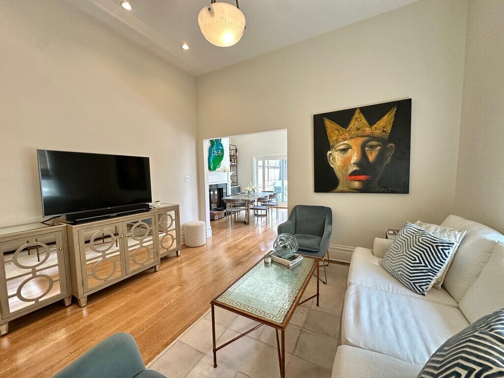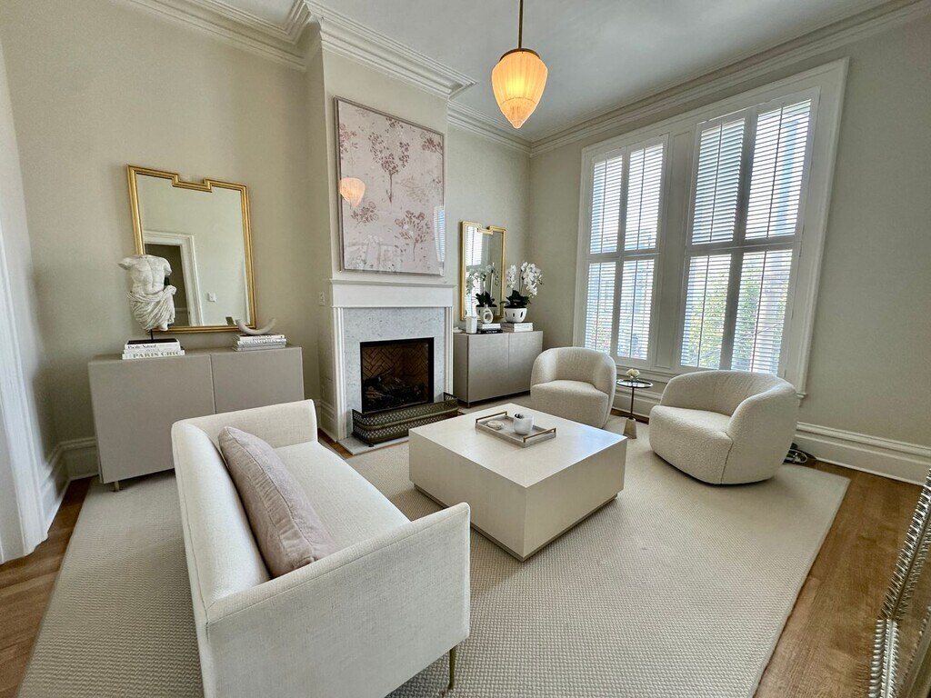 This exquisite Victorian flat has been beautifully remodeled and restored, offering over 1,800 square feet of living space with two bedrooms, two bathrooms, double parlor and private deck. Situated in the sought-after Pacific Heights neighborhood, this unit occupies the entire upper floor, providing views overlooking Fillmore Street, renowned for its array of world-class restaurants, charming shops, and picturesque parks. This stunning unit seamlessly blends vintage and modern elements, boasting 15-foot ceilings, oak floors, crown moldings, double paned windows and two gas fireplaces. The kitchen and bathrooms have been meticulously updated with granite and marble finishes, complemented by high-end fixtures and top-of-the-line appliances. The open layout of the living room, dining room, and kitchen are bathed in natural light, creating an ideal setting for hosting gatherings. With two formal bedrooms and a double parlor, there's flexibility for additional living space or creating a home office setup to suit your needs. Stackable washer and dryer in the flat. Parking nearby. Excellent references, credit and income required. No pets please. Available February 1st.