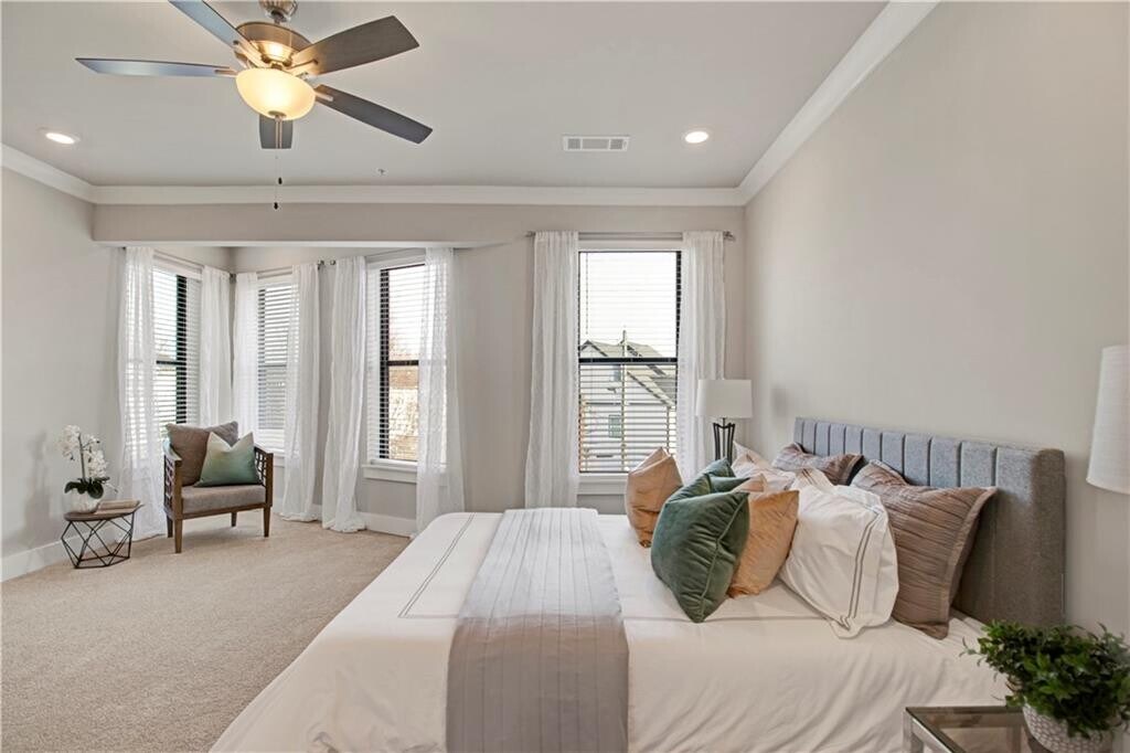 Discover modern,low-maintenance living in this 3-story townhouse located at 2030 Main St. #205 in Atlanta’s vibrant Westside community. This 2-bedroom,2.5 bath residence offers a smart roommate-style layout perfect for homeowners. The main level includes a private entry and garage access. The second level showcases an open-concept kitchen,dining,living area with oversized windows,natural lights and not one,but two private balconies perfect for morning coffee or entertaining with a view. A convenient half-bath completes this level. The top level features two spacious bedrooms each with its own private bath including a large owner’s suite with dual vanities and walk-in shower. Located minutes from the BeltLine,Mercedes Benz Stadium and top restaurants,this home offers both comfort and convenience. Schedule your tour today!