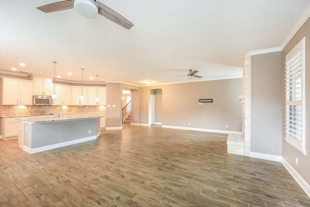Spacious North Central Home Near Bulverde Rd & 1604 Beautiful and spacious 5-bedroom, 4-bathroom home located in the highly desirable North Central area near Bulverde Road and 1604. Offering a versatile and functional layout, this home is perfect for comfortable living and entertaining. The open-concept floorplan features ceramic tile throughout the downstairs living areas, creating a seamless flow from room to room. The kitchen is a true centerpiece, boasting granite countertops, stainless steel appliances, a double oven, and an abundance of cabinet space, perfect for cooking, hosting, and everyday convenience. Downstairs, you’ll find one bedroom with a full bathroom, ideal for guests or multi-generational living. Upstairs offers four additional bedrooms along with a large secondary family room, providing flexible space for a game room, media room, or additional living area. Step outside to enjoy the expansive backyard complete with a large covered patio,perfect for relaxing evenings or weekend gatherings. Conveniently located with easy access to shopping, dining, and major highways, this North Central gem offers space, comfort, and an unbeatable location.