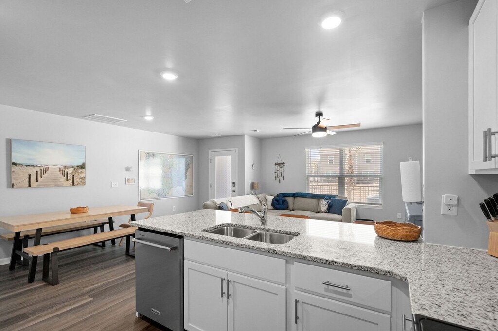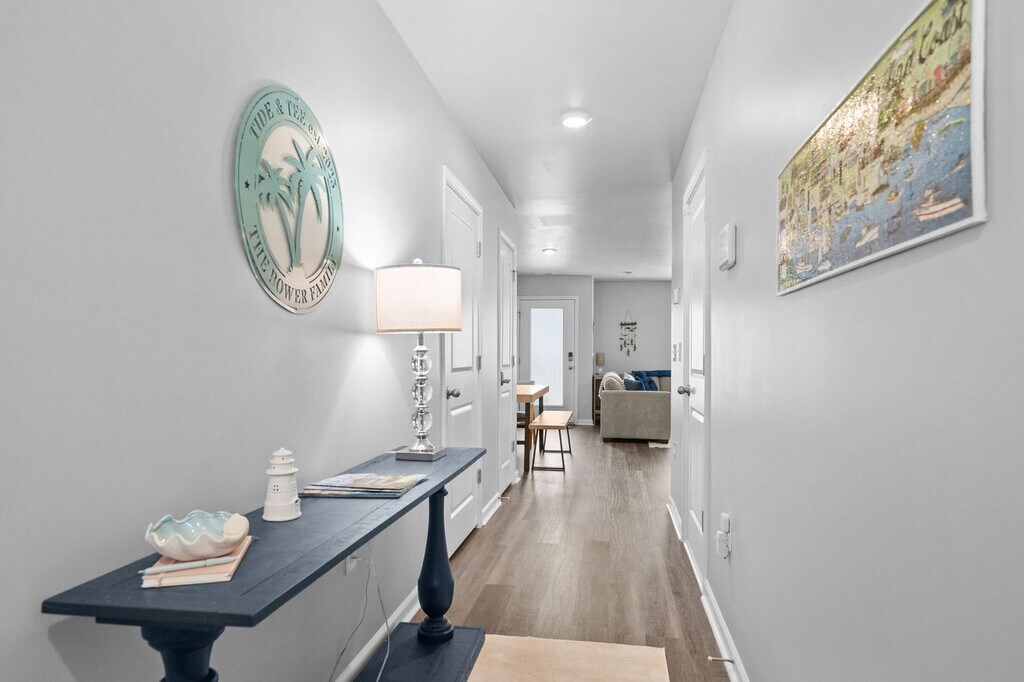 The advertised rate of $4,453/month is the lowest available price, based on a 1 month(s) stay with a move-in date of September 13, 2026. Rates vary depending on the duration of stay, season, and other parameters. For exact pricing and additional pricing components, please visit our website and enter your desired move-in and move-out dates. The rate is applicable when billed upfront; it can be higher if billed in multiple payments. Experience all that Surfside Beach has to offer while living like a local in this home. Tide and Tee has it all. Inside are 1500 spacious square feet with 3 bedrooms and 2.5 baths to spread out in and feel at home. Inside, you will find a modern, clean, and spacious brand new home. The first floor has 9-foot ceilings, a fully stocked and modern kitchen with everything thought of, a living room with a huge sectional sofa that will seat the whole family, a 65" Roku TV, and comfortable dining for up to 7. There is a half bath on the first level. Upstairs, you will find a primary suite with en suite private bath including double vanities, a 40" Roku TV, wardrobe, and full-sized dresser. There is a 2nd bedroom with a 40" Roku TV and large closet along with a hallway shared bath with a tub/shower combo. The 3rd bedroom is the perfect bunk room for the kids and allows 2 families to have a fun-filled vacation without breaking the bank or being crammed into a tiny space. The painstakingly converted garage oasis doubles as a game room, boasting a full-sized ping pong table, dart board, and putting green. Free golf cart parking is available at specific, unmetered beach accesses, including 1st, 2nd, 4th, Avenues North, as well as 2nd Avenue South, and metered spaces are only $10/day. There are delicious restaurants and a grocery store right across the street as well as right down the road in Downtown Surfside, which you can reach with the included electric-powered golf cart. Taking golf cart legal Glenns Bay Road, you will have a straight shot to downtown, the Surfside Pier, and the Ocean, which is just 1/4 mile beyond. Just a 10-12 mins ride by cart to these locations will give you an advantage during the summer months as you will also find that it's easier to park a golf cart by the beach than a car. The Cove at Glenns Bay offers a serene coastal lifestyle in the heart of Surfside Beach, SC. This charming community is just 10 minutes away from golf courses and the beach by golf cart, with everyday conveniences and top attractions close by. The home is just 15 minutes from the Myrtle Beach International Airport. Quiet hours are observed from 11 pm to 7 am. Guests must be at least 25 years old to book. Check-in time is at 4:00pm and check-out is at 10:00 AM. The maximum occupancy for this property is 8 people, including infants and children. There is an additional guest fee after the 7th guest. This is a non-smoking property, and pets are not allowed. For your stay, linens, bath towels, hand towels, and washcloths are provided. The kitchen is equipped with essential supplies like a roll of paper towels, hand soaps, and 2 dishwasher and 2 laundry pods, and the bathrooms are stocked with two rolls of toilet paper each. Don't forget to bring your own beach and pool towels. Taxes are not included in the nightly rate. [SI]