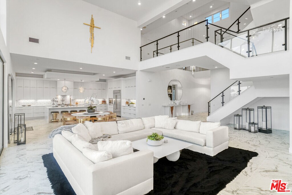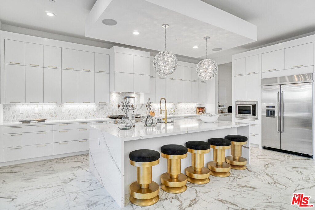 Welcome to this remarkable fully furnished luxury estate nestled in the desirable Westcliffe community of Porter Ranch Hills. The design elements work harmoniously to create inviting spaces that cater to both casual family gatherings and formal entertaining. With high-end finishes, spacious layouts, and thoughtful amenities, every corner of this estate is curated for an elevated lifestyle, ensuring that residents and guests alike can enjoy both luxury and comfort in equal measure. As you approach the property, you are greeted by an impressive facade that hints at the elegance within. Upon entering, you'll be captivated by the grand open-concept layout, featuring soaring high ceilings that showcase all three levels in which creates a sense of spaciousness and grandeur. The expansive oversized stacking doors of this estate create an impressive connection between the indoor and outdoor spaces. They not only flood the interiors with natural light, enhancing the ambiance of each room, but also beautifully frame the stunning panoramic views of the cityscape and majestic mountains. This feature not only enriches the aesthetic appeal but also provides a picturesque backdrop for everyday living, making each moment spent in the home feel special and serene. From high-quality flooring to exquisite cabinetry and designer light fixtures, every detail has been thoughtfully curated to create a cohesive and luxurious atmosphere. The gourmet kitchen, which boasts an oversized island that serves as gathering place, equipped with top-of-the-line appliances WOLF/SUBZERO, sleek quartz countertops, and an abundance of storage, this kitchen is perfect for culinary enthusiasts and hosts alike. Retreat to the luxurious primary suite, a private oasis that features breathtaking views, a cozy outdoor patio complete with a fireplace for those chilly evenings, and an opulent bathroom designed for relaxation and a spacious walk-in shower. Each of the spacious bedrooms has been thoughtfully designed to ensure comfort and privacy, with generous closet space and easy access to beautifully upgraded bathrooms. Step outside to discover your own resort-style backyard, where the pool and spa provide the ultimate in leisure and relaxation. For those who enjoy cinematic experiences, the private theater room is an inviting space to enjoy movies and shows in comfort. Fitness enthusiasts will appreciate a room for a gym, while those needing a dedicated workspace will find the elegant office area inspiring and functional. The spacious third level of this luxury estate is designed for next-level entertaining, making it an ideal space for hosting friends and family, with it's own private bathroom, this area adds convenience and functionality, allowing guests to enjoy themselves without needing to access the main living spaces. The stacking doors open up seamlessly to a balcony where you can unwind while taking in the stunning views of the city lights, creating an enchanting atmosphere for evening gatherings. Whether it's a lively game night or a quiet evening of relaxation, this versatile space enhances the overall appeal of the home. This luxurious estate comes with over $350,000 worth of exquisite furniture, elevating the home's aesthetic and comfort. The gold furniture features 18k plating and silver plating, adding a touch of opulence to the contemporary design. To enhance the living experience, an alkaline water system has been installed under the kitchen sink, providing high-quality drinking water and solar panel. The hand-sewn drapes are a unique touch, softening the contemporary style and creating a cozy atmosphere that contrasts with the often sterile look of modern design. This estate is truly a one-of-a-kind opportunity. Schedule a private tour today! MLS# 25625339