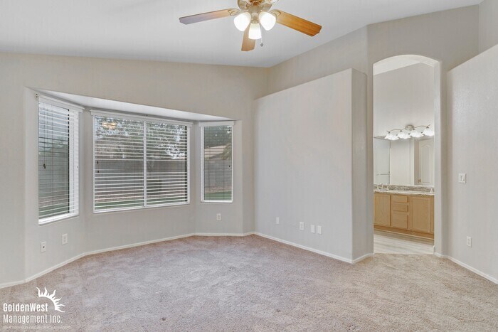 Charming 4Bdm 2Ba Home with a Private Yard in Peoria! Welcome to a bright living room with large windows that flood the space with natural light, complemented by modern flooring throughout. The open floor plan seamlessly connects the living room to the kitchen and dining areas, creating a perfect space for gathering. The kitchen is equipped with sleek stainless-steel appliances, including a refrigerator, range/oven, and dishwasher, along with beautiful granite countertops, and ample cabinetry for all your storage needs. The primary bedroom is generously sized with a bay window that offers a peaceful retreat. The three additional bedrooms provide ample space for family, guests, or a home office, each with its own ceiling fan, neutral carpeting, and closet space. The primary bathroom features a large double vanity, a soaking tub, and a separate shower. The additional bathroom is equally well-appointed, featuring a sleek vanity and a versatile bathtub with a shower combination, seamlessly blending style and functionality. Additional amenities include a private patio that makes it perfect for outdoor activities, a spacious garage and a laundry room equipped with a washer and dryer. This property is located in a quiet, well-maintained neighborhood in Peoria, just minutes from schools, shopping, dining, and major highways for easy commuting. Tenant pays all Utilities. Pets with approval via the process. This property allows self guided viewing without an appointment. Contact for details.