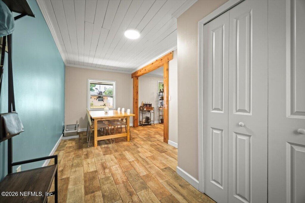 1.5 mi to San Marco Square Updated kitchen Fenced backyard Beautifully maintained 3-bedroom,2-bath single-story home with a 1-car garage,located near San Marco and minutes from downtown Jacksonville. The open living area features crown molding,recessed lighting,and wood-look tile flooring. The kitchen includes granite countertops,stainless steel appliances,and solid wood cabinetry. Both bathrooms are renovated with full-height tile surrounds and modern finishes. Primary suite includes a private bath with walk-in shower. Indoor laundry with tankless water heater. Enjoy a fully fenced backyard and concrete patio for outdoor dining or relaxation. Convenient to River Oaks Park (0.7 mi),I-95 (0.6 mi),and local cafés,breweries,and restaurants. MLS# 2134283