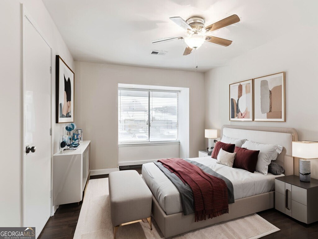 Charming and spacious 2-story townhome with 2BR/2.5BA in well maintained community. Beautifully updated Kitchen with premium soft-close cabinets, quartz countertops, tile back splash, and stainless-steel appliances. Upstairs features 2 bedrooms with en suite bathrooms and a step out balcony in the master. Makes for the perfect roommate floorplan! Close to The Battery, Truist Park, great shopping and dining options.
