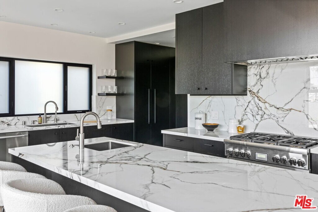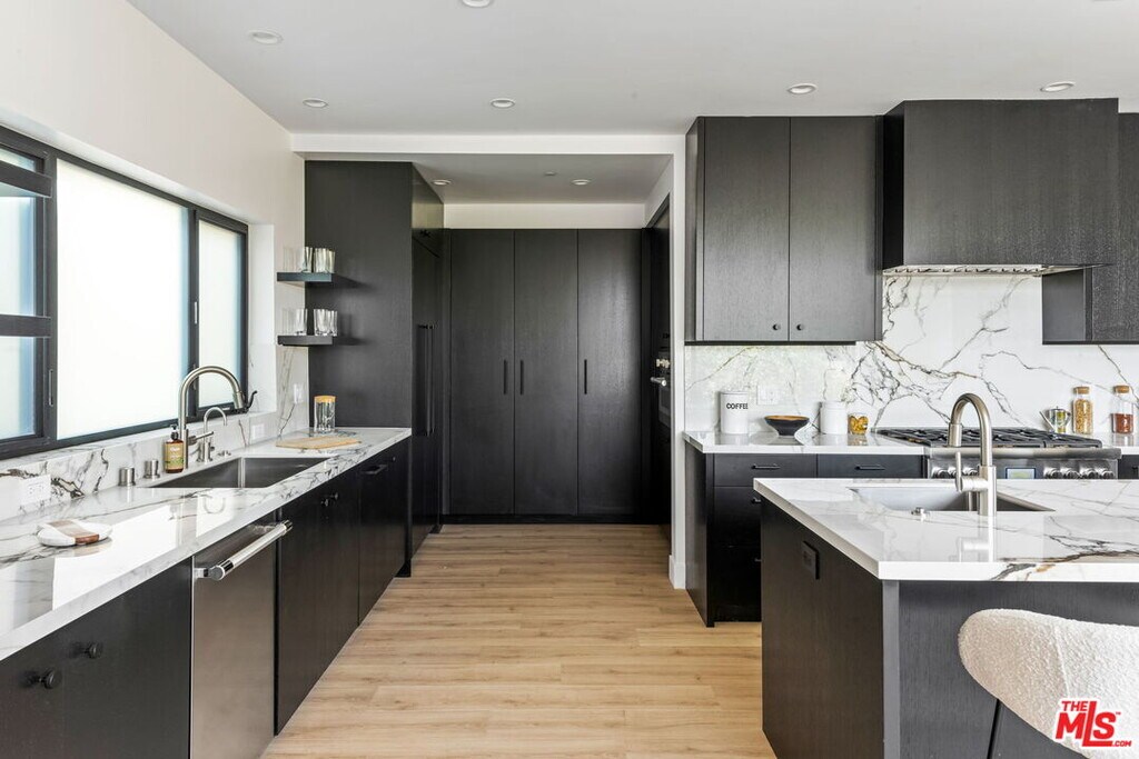Welcome to this stunning architectural gem in prime West Los Angeles, nestled on a picturesque tree-lined street in the Sawtelle District. Designed by renowned architect Bill Bernstein, this 3-bedroom, 3.5-bathroom home redefines luxury living with impeccable attention to detail. Gated for privacy, the home offers a 2-car garage with direct access to the ground floor. Upon entering, you're greeted by a gracious entry and sitting area, setting the tone for the elegance that awaits. The ground floor features a flexible bedroom suite, perfect for a guest room or home office. On the second floor, you'll find a seamless open-concept layout. The great room encompasses a gourmet kitchen with an oversized center island / eating bar, a stylish dining area, and a living room with fireplace. Expansive Fleetwood sliding glass doors open onto a wraparound balcony, offering an indoor-outdoor flow for entertaining or relaxing, and the prefect blend of luxury and comfort. The upper level features an elegant primary suite with a spa-like bathroom, including a separate tub and steam shower for ultimate relaxation. Adjacent to the primary suite is a street facing corner bedroom with its own private balcony with city views, providing a serene retreat. The rooftop deck, equipped with an outdoor kitchen and breathtaking 360-degree city and mountain views, is perfect for al fresco dining, weekend barbecues or just lounging in the sun. Additional amenities include a convenient second floor laundry room, multi-zone HVAC, an alarm system, and a wine refrigerator, enhancing both functionality and luxury. Ideally located near the vibrant shops and acclaimed restaurants of Sawtelle and Century City, this home is also just a short drive from UCLA and other sought-after Westside neighborhoods. This is a rare opportunity to live in a virtually new residence of unparalleled design. MLS# 25607477