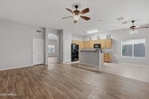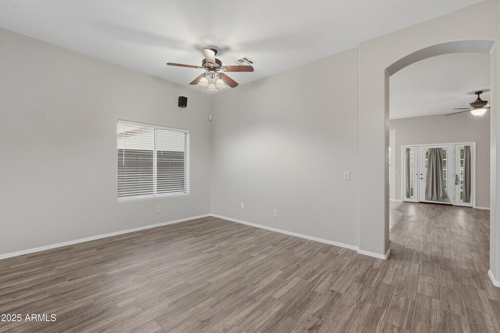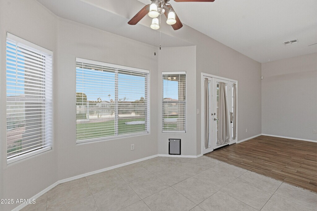 No Application Fees! Stunning single-level 3 bedroom,2 bathroom lakefront home located in the highly desirable Crystal Gardens community. This beautifully maintained home features an open layout with wood plank-style tile flooring throughout,two-tone neutral paint,upgraded fixtures,two-inch faux wood window blinds,and ceiling fans in each room. The spacious living room flows into the upgraded kitchen,which includes granite countertops,an island with breakfast bar,stainless appliances,separate pantry,and a cozy dining nook overlooking the lake. The large primary suite offers peaceful water views framed by bay windows,along with a walk-in closet,dual sink vanity,relaxing garden tub,and separate step-in shower. The three-car garage provides excellent parking and storage options. The backyard is designed for outdoor enjoyment,featuring an extended covered patio,additional paver seating area,grass yard,lake views,and an RV gate on the side of the home. Crystal Gardens is a unique lake community offering walking paths,catch-and-release fishing lakes,parks,and beautifully maintained surroundings. Conveniently located near I-10,Loop 101,shopping,dining,and entertainment at Gateway Pavilions and Westgate,this home provides an ideal blend of tranquility and accessibility. All Denali Real Estate residents are automatically enrolled in the Resident Benefits Package (RBP) for $55.00/month which includes Renter's Liability Insurance,Credit Building to help boost the resident's credit scores with timely rent payments,up to $1M Identity Theft Protection,HVAC air filter delivery (for applicable properties),our best-in-class resident rewards program,and much more!