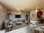Welcome to this charming 3-bedroom,2-bath home featuring an open-concept layout designed for modern living. The interior has been freshly painted,offering a clean and inviting atmosphere throughout. Enjoy durable wood laminate and tile flooring that combine style with easy maintenance. High ceilings enhance the spacious feel of the living areas,allowing natural light to fill the home. The open layout seamlessly connects the living,dining,and kitchen spaces—perfect for both entertaining and everyday comfort. This move-in-ready home is the ideal blend of functionality,comfort,and style. MLS# 65359209