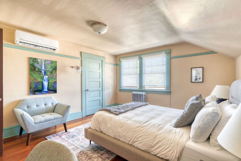 Feel at home in this spacious 5-bedroom craftsman located in the heart of Portland's Central Eastside. With 2500 square feet, this home combines Portlandia vintage charm with modern updates. This home is fully equipped with stainless steel appliances and a large in-unit washer and dryer. Each of the 5 large bedrooms features a brand new queen bed adorned with down comforters, duvets, and plush pillows, as well as ample storage with large closets, dressers, and luggage racks. The newly remodeled bathroom, completed in the summer of 2022, showcases a stunning mosaic shower and modern fixtures. Brand new air conditioning has been installed throughout the entire home to ensure your comfort. The kitchen is a chef’s delight, boasting quartz countertops, top-of-the-line stainless steel appliances, a high-end gas oven, plenty of dishware, cooking utensils, and a single-serve coffee machine with coffee pods provided. Relax in the cozy living room, which features a Smart TV with Netflix and many other channels. High-speed Wi-Fi is available throughout the house, and essential amenities such as shampoo, conditioner, body wash, laundry soap, cleaning supplies, and extra towels are provided. Free parking is available on both sides of the street. Nestled in the heart of Portland's vibrant and eclectic Laurelhurst neighborhood, this centrally located home offers the perfect blend of urban excitement and residential tranquility. Laurelhurst is renowned for its tree-lined streets, historic homes, and beautiful gardens. Laurelhurst Park, a lush urban oasis featuring walking trails and a picturesque pond, is a short stroll away. Food enthusiasts will delight in the proximity to some of Portland's best dining options in the nearby Kerns and Buckman neighborhoods. Shopping and entertainment are also easily accessible, with the trendy Hawthorne and Belmont districts just a short distance away. Powell's City of Books is a quick drive or bike ride away, and the Alberta Arts District is a vibrant hub of creativity. Quiet hours are in effect from 10 pm to 7 am. Smoking tobacco or marijuana inside is strictly prohibited and if detected, will result in $150 penalty. Events and/or parties are strictly prohibited and will result in fines per host discretion and immediate eviction. Any unauthorized guest is subject to a $150/guest penalty. Unauthorized use of extra bed/s or bedroom/s a fine of $75. There is a $99/per dog fee, max of 2, and undeclared pets are subject to a $200 per stay penalty. Any unauthorized early check-in or late check-out is subject to a $75 fee. A lost, missing or otherwise unreturned key is subject to $100 fee. Missing remotes will incur a $50 fee. Violation of house rules may result in eviction and/or monetary fine. Spring through Fall is the sugar ant season throughout the Pacific Northwest, so please store items accordingly and clean thoroughly after cooking and eating, and dispose of food waste promptly. [SI]
