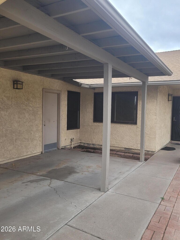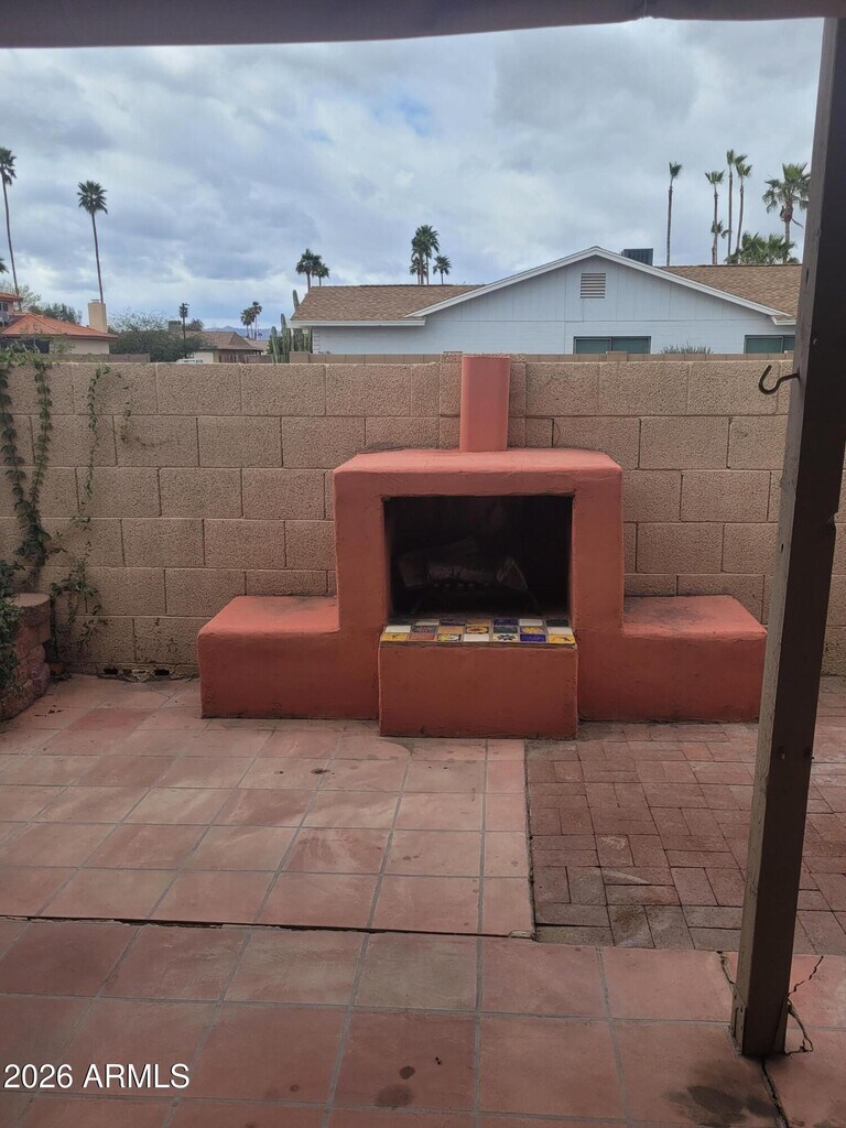Freshly painted and new carpet 3 bedroom 2 bath patio home is clean and ready for a new tenant. All appliances including washer,dryer,and refrigerator are included. Features include single car garage with tons of cabinets for storage and extra slab parking,covered patio with outside fireplace and built in grill. All windows have blinds. Ready for move in!