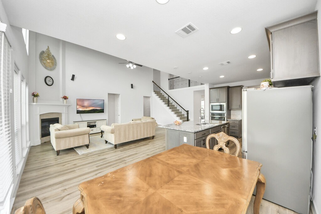 Stunning 5-bedroom,4-bath home for lease in the highly desirable new section of the Master Planned Firethorne Community! This beautifully maintained property offers an open-concept layout with soaring ceilings,elegant finishes,a gas fireplace,and abundant natural light. The chef’s kitchen features a large island,stainless steel appliances,and modern cabinetry—perfect for both everyday living and entertaining. The home includes two bedrooms on the first floor,a remote home office,a versatile flex room,and a Culligan water softener system. Step outside to a private backyard with no rear neighbors,a covered patio,and a spacious 3-car garage. Conveniently located near top-rated Katy ISD schools,H-E-B,LaCenterra,parks,and scenic walking trails. Residents enjoy access to exceptional community amenities including pools,lakes,fitness center,playgrounds,and tennis courts. Now available for immediate move-in! MLS# 76630702