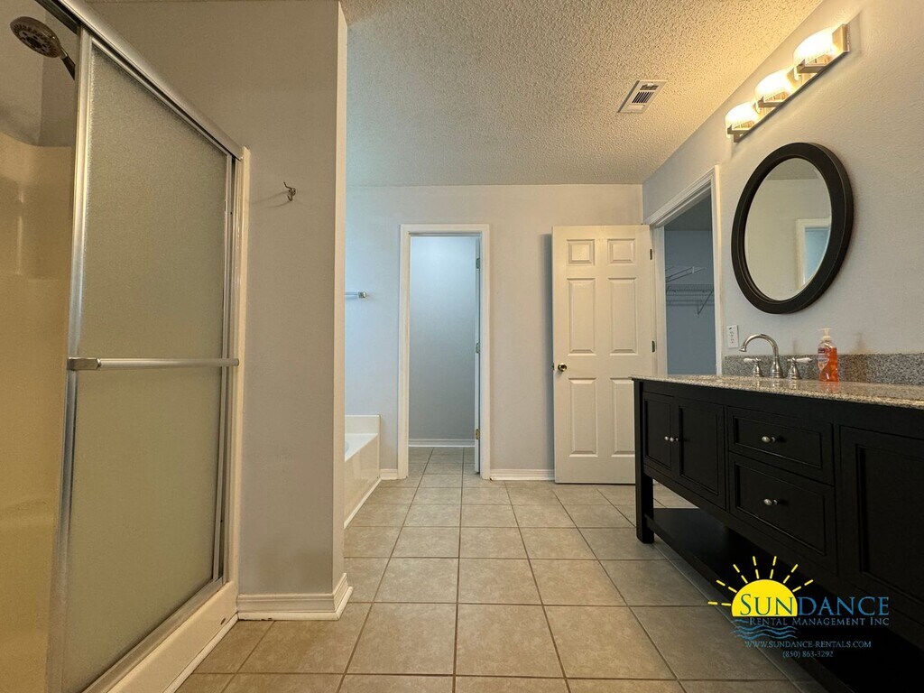 Welcome to your dream rental home situated in the heart of Gulf Breeze, this home offers the perfect fusion of convenience, style, and functionality, ensuring an unparalleled living experience. Step inside and be greeted by a spacious living room adorned with beautiful wood floors and a charming wood-burning fireplace, creating an inviting ambiance ideal for intimate gatherings. The kitchen is a culinary haven equipped with nice appliances, including a microwave, dishwasher, electric oven/stove, and a side-by-side fridge, allowing you to prepare delicious meals with ease while entertaining in style with ample bartop seating. Retreat to the primary bedroom, a serene sanctuary featuring a large barn door that separates the bedroom from the luxurious bathroom. Here, you'll find a spacious walk-in closet, double vanities, a separate shower, a water closet, and a soaking tub, offering the ultimate in relaxation and comfort. The generously sized guest bedrooms, each equipped with TV mounts, ensure your guests feel right at home. For added convenience, this home comes complete with a washer and dryer (as-is), making laundry day a breeze. Step outside to enjoy the great outdoors on the screened-in porch or under the pergola, perfect for both relaxation and entertainment. The expansive fenced-in backyard provides privacy and ample space for outdoor activities, while a convenient shed (as-is) offers additional storage space. Notably, this home is equipped with solar panels, contributing to energy efficiency and reducing utility costs. Don't miss out on the opportunity to make this exceptional property your next home. Schedule your viewing today and experience the epitome of Gulf Breeze living! No smoking is permitted. Pets (max 2) are accepted with a non-refundable $250 per pet plus a $50 admin fee (subject to owner approval) In addition to the rental amount, all Sundance Rental Management residents are enrolled in the Resident Benefits Package (RBP) for $25.00/month which includes liability insurance, credit building to help boost the resident’s credit score with timely rent payments, and much more! The benefits can be found on our website under Tenant FAQ.