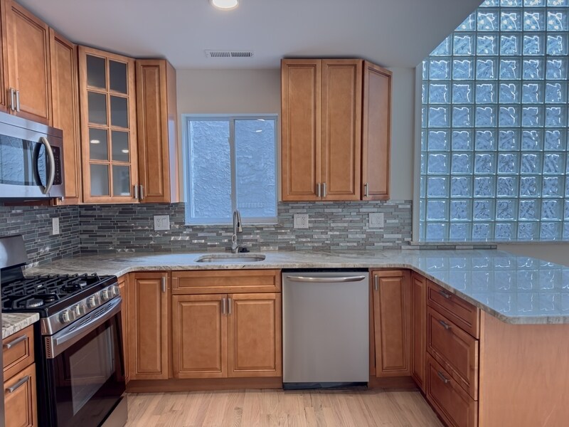 Now Leasing Bright, modern, one-of-a-kind 1 Bed & 1 Bath bi-level apartment with a large private deck! Limited Time Offer 1 month off on a 16-mo lease for move-ins by Feb 1, 2026. Net effective base rent $2,156.25 Base Rent: $2,300.00 per month Additional water fee of $50/mo and pet fees apply First Month's Rent & Security Deposit for move-in Contact: Alexis Call or Text: Email: Unit Features: - Thoughtfully renovated blend of classic and modern design - Condo level finishes throughout - Brownstone character: high ceilings, dramatic double-height glass brick wall, hardwood floors, boutique 3-unit community - Bi-level layout - Outdoor space / private deck - Central A/C and heat - Washer/dryer in-unit - First level features an open-concept kitchen and living area that opens onto a spacious deck - An open staircase leads to the upper level, which includes a bedroom suite with a walk-in closet, full bath, and a dedicated home-office area - Full chef's kitchen with stainless steel appliances and peninsula seating - Chic bathroom with marble tile, white oak floating vanity and glass shower doors - Pet Friendly (2 pet max / $50 pet rent for each pet / must be approved by Management) - Renter is responsible for internet, electric and gas service. A flat $50/mo water usage fee applies - Professionally managed with resident portal, online rent pay and attentive maintenance team - Street parking only Neighborhood: Spring Garden — classic brownstones, red-brick facades and tree-lined streets. ~8 min walk to Whole Foods, Target, CVS, Fairmount Farmers Market. Steps from local favorites Jack's Firehouse, Urban Saloon, Zorba's, La Calaca Feliz, Pizzeria Vetri, Sabrina's, Twisted Grounds, Warehouse Cafe and more. Walk to Center City or hop on the Broad Street Line to get anywhere in the city fast. Spend weekends at the Philadelphia Museum of Art, the Barnes Foundation, or strolling the Schuylkill River Trail. With Fairmount Park just minutes away, you'll have plenty of green space to relax and unwind. Disclosure: Some photos in this listing have been virtually staged to illustrate potential furniture layout and design. Furnishings and decor shown are digital representations only. All floor plan measurements are approximate and provided for illustrative purposes.