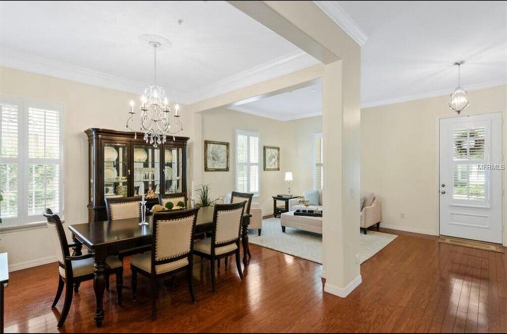 This charming two story Baldwin Park home has expansive front porch that provides numerous designer selections inside the home including plantation shutters. Hardwood floors flow throughout the home, carpet in bedrooms. The spacious kitchen is the heart of the home with ample counter space and storage, a center island with seating, a separate eating area, a large pantry and wet bar to make entertaining easy. The kitchen flows into the formal living & dining rooms. Additional living space includes a cozy family room with lots of natural lighting. To ensure the master suite is luxurious, the bathroom has been outfitted with two vanities, a large soaking tub, walk-in shower, & an oversized closet. In addition to the master bedroom you will find 3 large bedrooms upstairs 2 with balcony access. The main house also includes 1 bedroom on the main floor next to a full bathroom that is perfect for guests or office space. A covered & private patio off the back of the home creates another outdoor entertaining space that includes a screened in porch area. Above the three-car garage is a newly updated studio with a separate entrance, full kitchen and full bathroom with laundry. Could be used as a mother-in -law suite. Baldwin Park residents have access to the neighborhood gym, community pools, numerous parks, walking trails, and clubhouse, dog park. Plenty of shopping and dining is available in Baldwin Park's downtown that is just a quick bike ride away or walk away. AVAILABLE Now