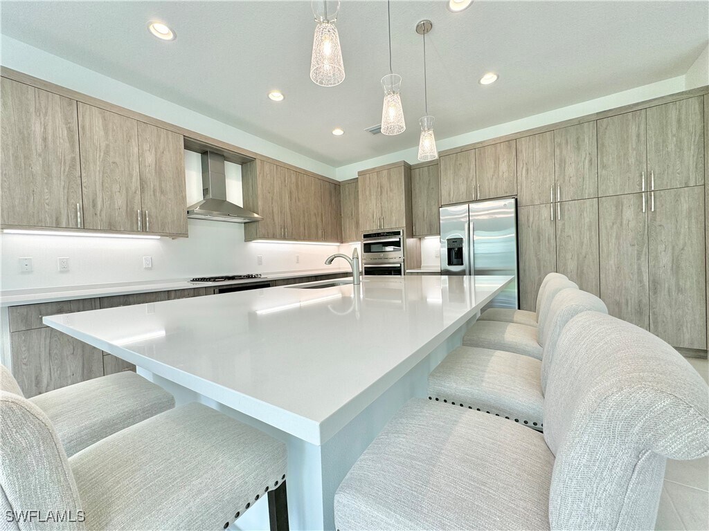 An exceptional,newly built,unfurnished,two story,open floor plan concept with 3 car garage rental home in the luxurious RIVERCREEK community,built by GL HOMES. The home greets you with an extremely high ceilings and grand entrance. Gourmet kitchen is equipped with the state of the art appliances that includes a beautiful range hood,impressive matching chandeliers in the dining area and over the large island with quartz countertop. Walk-in butlers pantry with a ton of storage space. A beautifully done mud room area finished with cabinetry for your coats,shoes. Large size master bedroom with recess lighting and a coffered ceiling,that gracefully adds elegance. Thoughtfully designed "His" and "Her" walk-in closets with tons of storage space. Besides master bedroom,there are four more large additional bedrooms (including one at the lower level). Huge loft area also overlooking the lake at the back that can be a perfect & comfy media room for those cozy late night movies. Upstairs laundry room with matching cabinets and stainless steel sink along with washer and dryer. Frameless glass doors along with hand showers in the bathrooms. Entire lower level fitted with beautiful designer decorated high end tile floors that look like engineered wood. Three car garage. This stunning newly built home is located in very close proximity to all key destinations: shopping (minutes from Miramar outlet),dining,entertainment,supermarkets,beaches,hospitals,international airport,minutes from Florida Gulf Coast University,and much more. 5 star World Class clubhouse is offers endless amenities,such as pickleball,basketball,tennis,fitness center,swimming pool,playground and much more.