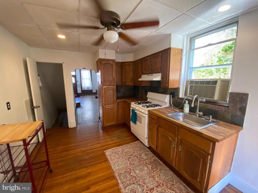 Gardener-Artist-Writer-Teacher-Healer's Dream House: Very Special 3 Bed House with Huge Garden Courtyard rarely offered: This is a late 1800's 3 bed victorian rowhouse with original details and woodwork, part of a huge shared garden courtyard with flowers, trees, chicken coup and great neighbors. 1ST FLOOR: Enter through etched glass Tofani door into large open space with oak floors, lighted mantle, beautiful staircase and plenty of room for living and dining. 1st Floor has GE Clearview energystar Wi/Fi cooling. KITCHEN in rear is spacious with newer 5 burner gas range/oven, disposal, tall European style fridge, butcher block counter with India slate backsplash. EXTRA ROOM in rear with big window looking out to garden for sitting, reading, yoga, art or craft. 2ND FLOOR: Front bedroom with great light, oak floors, and GE ultra quiet/Wi-fi A/C unit. Middle Bedroom: Good size room with view to rear. Hallway bath has tub. ceramic fixtures and hex tile. 3rd Bedroom has sunroom window bay - has been used as a lovely bedroom, guest room, and studio through the years with quiet A/C unit installed. BASEMENT: Large space with full laundry and sink, great for storage and extra room for craft. House is close to Frankford Ave with bookstore, cafe's, lots to see and do. York/Dauphin EL Stop is two blocks down. GARDEN IN REAR is over 3000ft of space where great neighbors have created beauty, wildflowers, herbs, shady nooks, chicken coup, large firepit area and room for lovely dinners. Contact Owner (owner is a PA real estate agent) for a tour of the house and the garden.