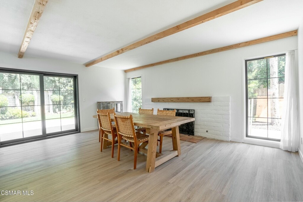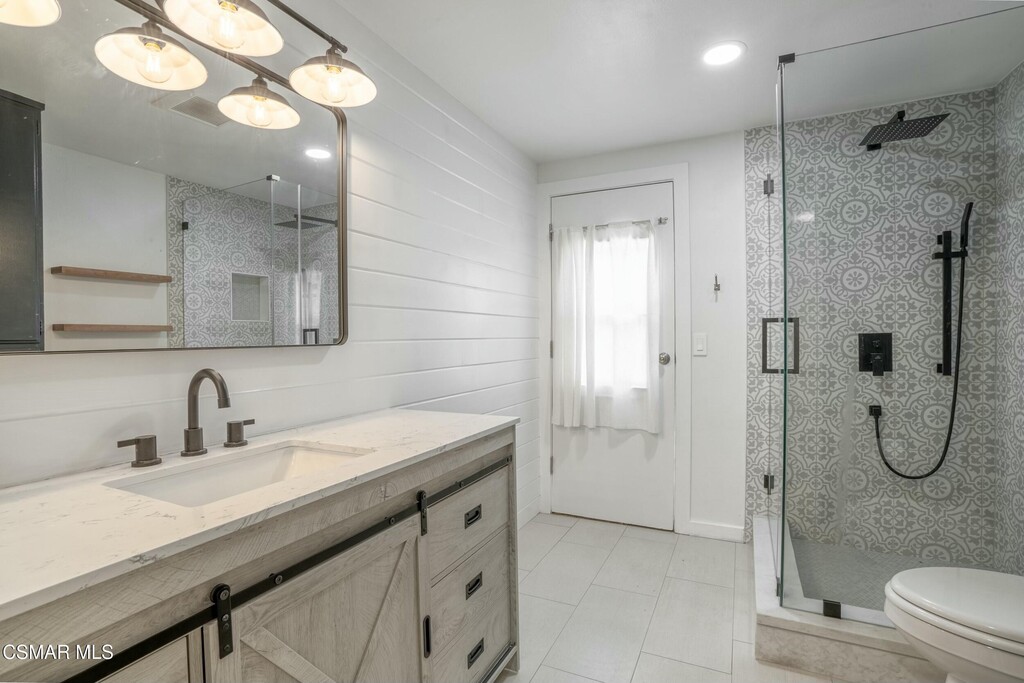 Gorgeous recent remodel, modern farmhouse, 5 bed 3 bath two-story home, private, on quiet cul-de-sac. Dramatic ceiling-to-floor glass entry to open living room with expansive windows, black-onyx fireplace and vaulted ceiling. Large kitchen w/massive center island, waterfall quartz and newer stainless appliances, Viking gas cooktop w/Indoor Grill. Kitchen adjoins cozy family room w/Fireplace, and 10' sliding doors open out to backyard/patio, lush garden and lawn. The fifth bedroom is downstairs as well w/access to a 3/4 bathroom and frameless-enclosure shower. Upstairs, the large master has a dramatic private Spa-Quality bathroom w/ huge multi-head shower & 6 body sprays and free-standing tub & dbl vanity & walk-in closet. Three more bedrooms and another remodeled hall bathroom w/tub, shower & dbl vanity. The property is surrounded by some of the best hiking, biking and golfing, minutes to fine shops, dining, Westlake Elementary School, Sherwood Country Club and 20 minutes to Malibu beaches.