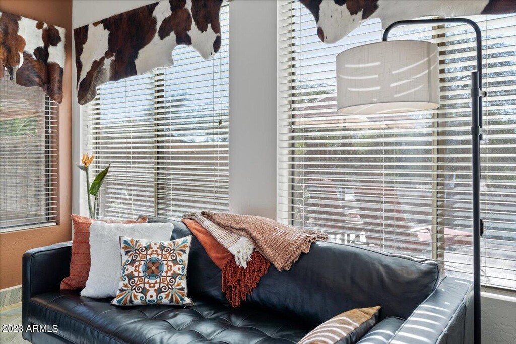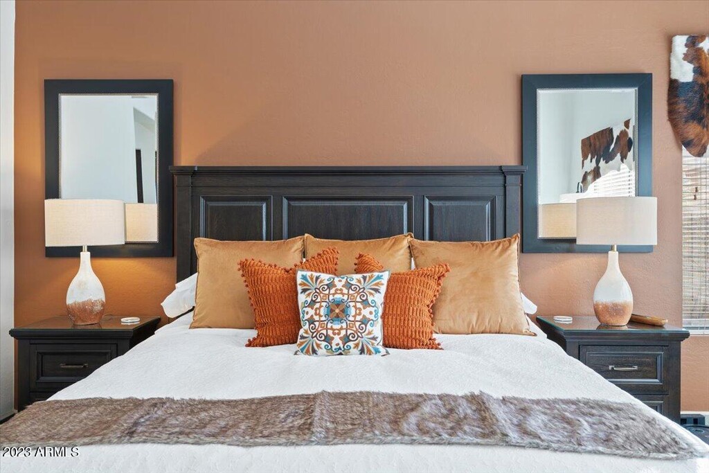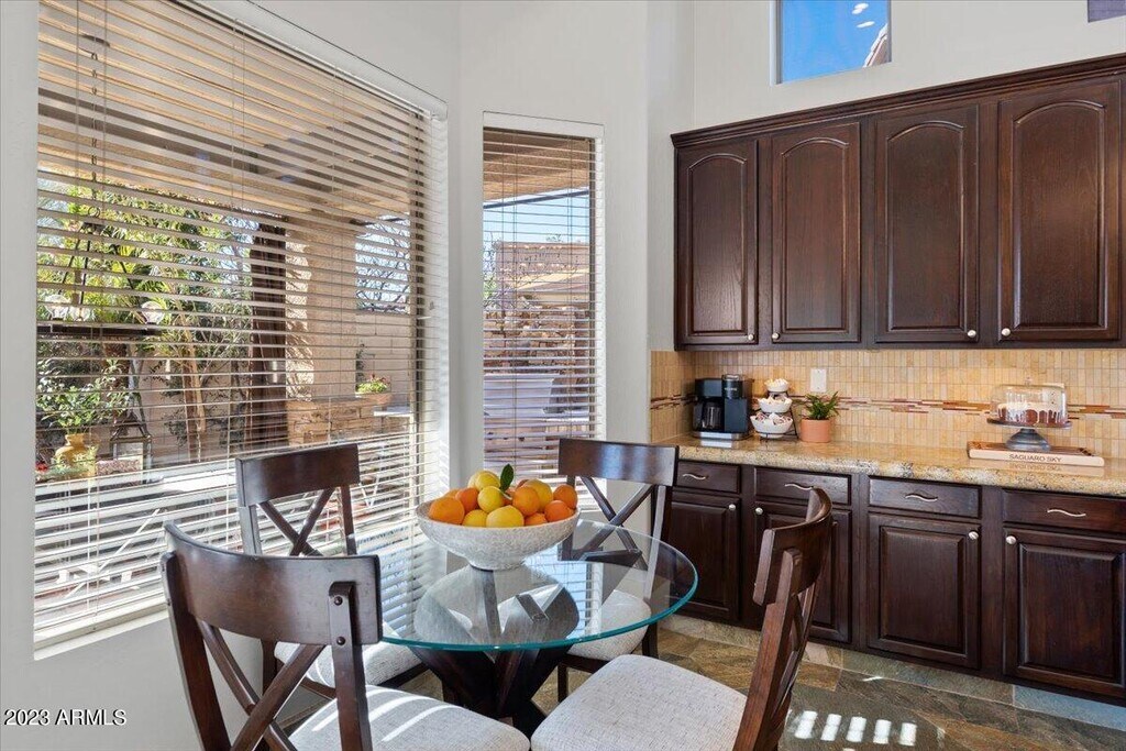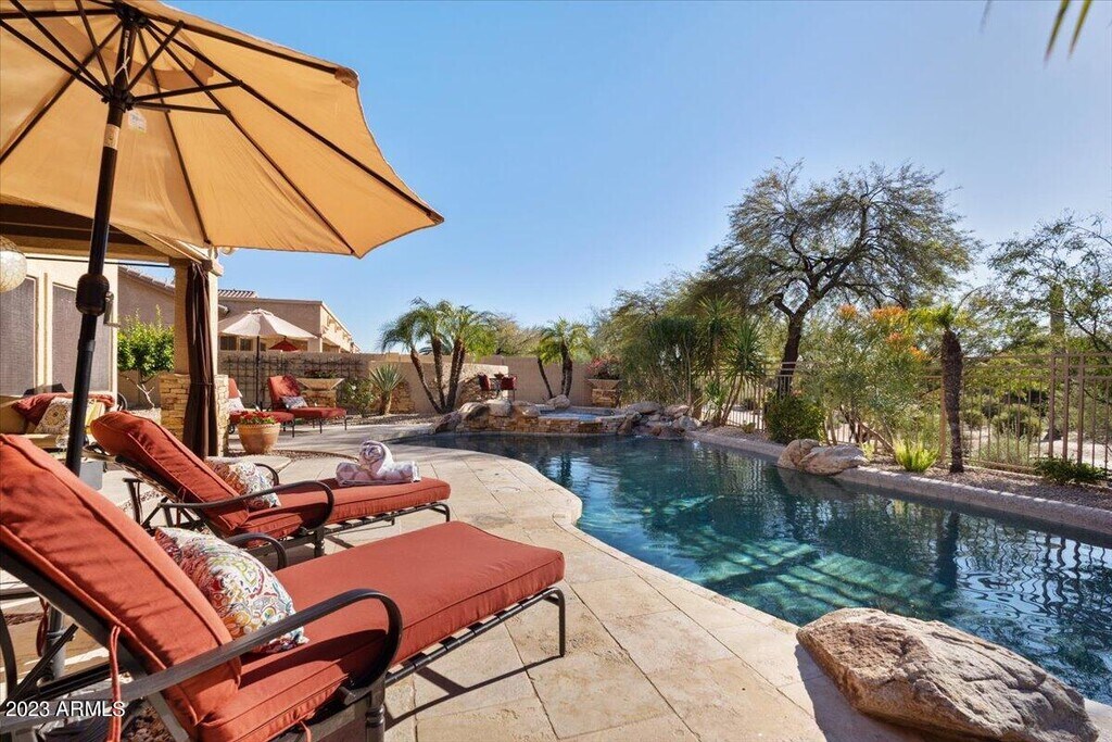 Furnished Saguaro Sky Retreat in Grayhawk embodies high-end resort styling and amenities with your own private space. The fully stocked open kitchen has professional appliances,granite countertops & spacious island with breakfast bar. Two separate family rooms plus a formal dining room. The primary bedroom suite is located on the first floor and 3 additional bedrooms upstairs,2 with king beds and 1 with 2 twin beds. All with updated bathrooms. Beautiful sunset views will be your evening backdrop with west facing backyard and no back neighbors. The putting green,misters,gas BBQ and cooktop,& fire table complete this stunning backyard paradise! Walking distance to grocery store & Starbucks or ride in style using the 4 cruiser bikes.