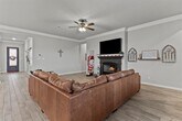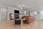 Discover your dream home offering 4 bright bedrooms, 3 well appointed baths, and a convenient 2 car garage. Step inside an inspiring open split-concept design featuring a versatile study adorned with double doors. The elegant entrance, highlighted by an oversized front door, welcomes you into main areas graced with chic wood tile flooring. The heart of the home is a gourmet kitchen complete with an oversized island and generous walk-in pantry. Adjacent, the expansive living room centers around a warm wood-burning fireplace. Secondary bedrooms are generously sized alongside two additional bathrooms, ensuring comfort for all. Retreat to the primary suite, an idyllic oasis with dual sinks, a relaxing garden tub, and a separate shower. Outside, enjoy a covered back patio and a fully irrigated, spacious yard offering serene privacy with no rear neighbors.