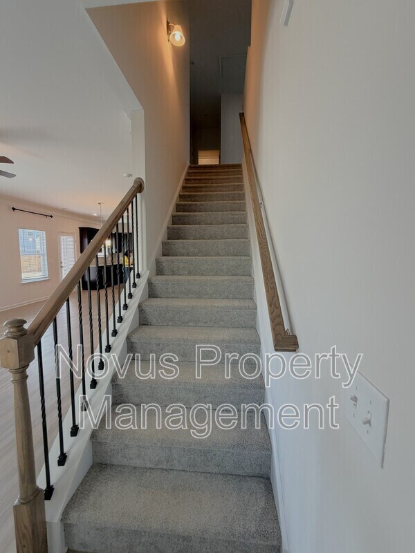 Welcome to this brand-new build located in NE Carrollton, nestled within Carrollton City School District. This prime location offers convenient access to excellent shopping, dining, and is just under 3.5 miles from downtown Carrollton and only 6.5 miles from the University of West Georgia! 4-bedroom, 2.5-bathroom with a spacious foyer that opens to a modern, open-concept living, dining, and kitchen area. Large eat-in kitchen with granite countertops, upgraded white cabinetry with crown molding, a central island, and stainless-steel appliances. It seamlessly flows into the fireside family room. Upgraded vinyl plank flooring throughout the main level enhances the open and airy feel of the home. Iron staircase leads to the second floor, where you'll find the master suite featuring a tray ceiling and large walk in closet. The upper level also includes three generous bedrooms, a shared bath, and a convenient laundry room. Large closets provide ample storage space, and both floors are complemented by 9-foot ceiling heights.