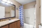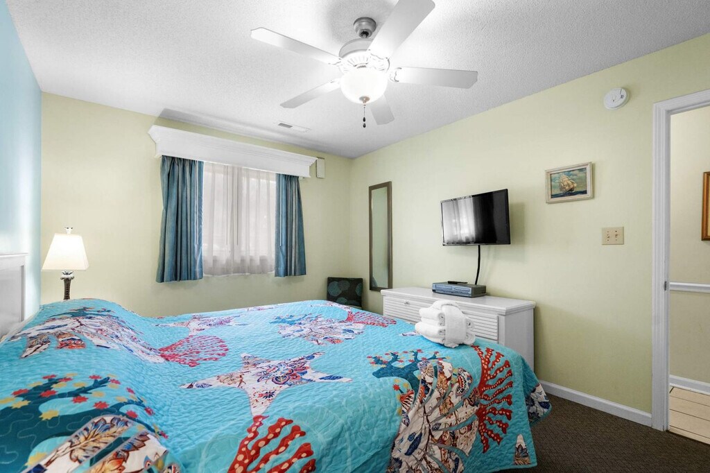Feel at home in this stylish ground floor 2-bedroom condo, located just 1.5 miles from Surfside Beach. Enjoy easy access to the beach and local shopping. This spacious and comfortable condo features a fully stocked eat-in kitchen and a comfortable living room. The primary bedroom includes a king-size bed, a 40" flat screen TV with premium cable, an en suite bathroom, and a walk-in closet. The second bedroom has two comfortable double beds with a separate shower room and vanity/toilet room. Free parking is available on premises. Located between Business Hwy 17 and Hwy 17 Bypass, Grand Palms at Deerfield is centrally located in Surfside Beach with easy access to restaurants, shopping, and tons of amenities. There are 3 grocery stores, Target, and Walmart within 3 miles or a 10-minute drive. Some favorite restaurants like the Wooden Spoon, Surfside Pizza, The Bar-B-Q House, and Johnny D's Waffles are right around the corner. There are additional restaurants and great shopping destinations in the Market Common. The Myrtle Beach International Airport is just 15 minutes away. Guests must be 25 years of age or older to reserve. No smoking and no pets are allowed as per HOA regulations. Quiet hours are between 11pm and 7am as per city ordinance. Please consider your neighbors and keep noise at a reasonable level. Check-in is at 4:00 PM and check-out is at 10:00 AM. [SI]