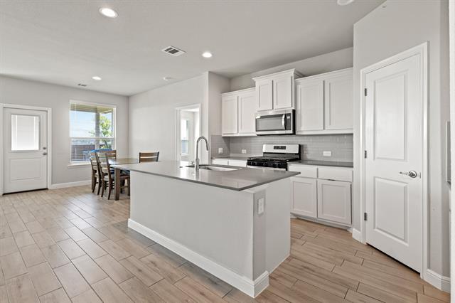 $300 off first month rent. Looking for a fresh start in a brand-new home? This beautifully designed single story lease is exactly what you’ve been waiting for! With 4 spacious bedrooms and an open-concept layout, there’s room for everyone to live, work, and relax in comfort. Love to cook or entertain? The large chef’s kitchen features a sleek granite island, under cabinet lighting, and even comes with a refrigerator include making meal prep and hosting easy and stylish. You’ll also appreciate the convenience of a washer and dryer already in place, so moving in is a breeze. The main bedroom is thoughtfully placed at the back of the home for extra peace and privacy, offering a quiet retreat at the end of the day. Step out onto the covered back patio to enjoy your morning coffee or unwind in the evenings. The fenced backyard, complete with a landscape package and sprinkler system, gives you the perfect spot for weekend relaxation or play. Don’t miss out on calling this stunning home yours—schedule your tour today and discover the comfort, style, and ease you’ve been searching for!