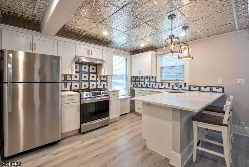 Welcome to this Fully Renovated, 2 bed, 1 bath apt with two off-street parking spots, shared backyard with owner and fantastic, all-new, beautiful eat-in-kitchen w/ quartz counters, stainless steel appliances designer back splash, soft close cabinets/drawers and a glimmering, real pressed-tin ceiling! You won't want to leave the Spa-Inspired bathroom which features gleaming ceramic tile and jetted shower. The first floor features the primary bath with ensuite bathroom, eat-in-kitchen/dining room and in-unit laundry. The second floor includes a living room, bedroom and lots of closet space. Steps from the Walnut Street train station (0.4 mile) and fabulous restaurants and retail. You do not want to miss this amazing apt! One cat or 25 lb or smaller dog okay with $25 per month pet rent and possible pet interview. All this, PLUS Brand new Central Air!!