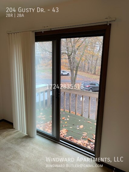 Unit is still currently occupied and will be shown by appointment only. Windward Apartments is a beautiful complex nestled away off Route 308 in Center TWP of Butler County, making it easily accessible to all of Butler's many amenities. This tranquil community boasts a roster of long-term tenants who have been part of our family for 10+ years. Our commitment to providing top-notch living spaces shines through with our recent upgrades. This particular offering is a spacious two-bedroom, one-and-a-half bathroom townhouse. The unit features vinyl plank floors in the dining room and kitchen for easy maintenance, while plush carpeting graces the bedrooms and living room. Step outside onto your private porch, conveniently located off the living room, and savor the warm summer nights. We've taken care of all your appliance needs, outfitting the unit with the refrigerator, stove/oven, and dishwasher. Additionally, you'll find washer and electric dryer hookups, providing the utmost convenience. Both bedrooms are a true retreat with generously-sized closets, for ample storage and a charming balcony off the front bedroom. With local management to take care of all your immediate needs. Nestled in a serene, wooded area, Windward Apartments is the ideal place to call home. Tenants are responsible for electric, water, and sewage expenses, while we cover trash removal, lawn care, and snow removal for your convenience. Please note our strict policy: NO PETS, NO SMOKING, and NO HUD/VOUCHERS. Should you have any inquiries or require further information, please do not hesitate to contact us. If our regular office hours (Monday-Friday 8:30-4:30) do not align with your schedule, kindly reach out, and we will happily arrange an alternative time for you. Contact our direct lines at and . Thank you for considering Windward Apartments as your next home!