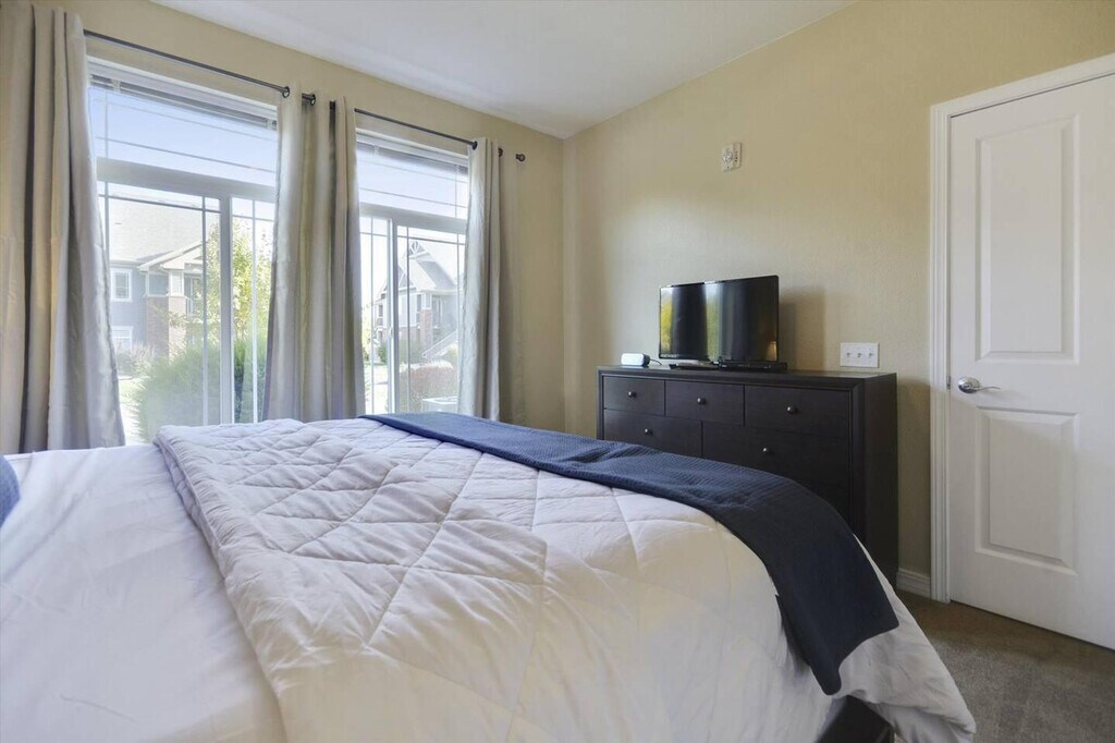 Discover the convenience and comfort of this 3-bedroom, 2-bathroom condo in Fort Collins, perfectly situated in the central/southeast area. This 1255 sqft home on the first floor offers easy access, making you feel at home the moment you step in. Enjoy the benefits of a community pool and the proximity to the Power Trail for biking adventures to Old Town. The apartment features a clean, open space with a cozy corner living room fireplace, central AC, and a galley kitchen with a pantry. It includes a spacious balcony with additional storage, fresh paint, and newer carpet. The fully equipped kitchen is ready for your culinary adventures with dish service for 12. The living room and master bedroom boast large windows and flat-screen TVs, enhancing your home entertainment experience. This apartment includes one reserved carport space and open street parking right in front of the home. Nestled at the crossroads of Drake and Timberline, this condo's prime location is near Jessup Farm. Within walking distance, you'll find King Soopers grocery store, a bank, Genoa wine & coffee bar, yoga studios, shops, and restaurants, offering you convenience at your doorstep. Please be aware that a minimum 30-day stay is required for booking this apartment. Reservations must start within 10 days of the available date to be approved. If you need a later start date, contact us, and we'll do our best to accommodate your schedule. This professionally managed unit is tailored for business travel, meeting corporate housing standards and offering a comfortable setting for your professional needs. [SI]