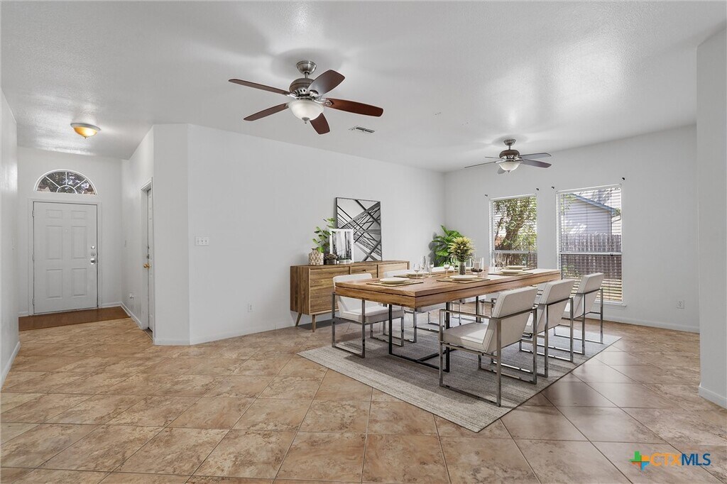 Tanya KerrPractical and conveniently located, this move-in ready home is tucked away in a quiet cul-de-sac in the Clarks Crossing neighborhood of Hutto, offering comfort, functionality, and the added convenience of no HOA! Recent updates provide peace of mind, including a new HVAC system installed in 2021 with a transferable service contract, and a foundation repair in 2025 with a transferable warranty. The inviting curb appeal is enhanced by a mature front yard tree, while the 2-car garage is equipped with a 240V outlet, perfect for EV charging. Inside, an open floor plan welcomes you with expansive windows that flood the home with natural light. The spacious living area is anchored by a cozy brick fireplace, while the kitchen offers laminate countertops, timeless white cabinetry with pull-out drawers, stainless steel appliances, a pantry, and a breakfast nook framed by a charming bay window. A nearby dining area can also serve as a versatile flex space. The primary suite is a retreat, complete with its own bay window and an ensuite bath featuring dual vanities, a soaking tub, a separate shower, and a walk-in closet, Two additional bedrooms, each with its own closet, provide flexibility for guests, office space, or hobbies, sharing a well-appointed full bath. Outdoors, the large fenced backyard is perfect for entertaining or relaxing, with a patio and a storage shed for added convenience. This prime location offers walking distance to the elementary school, along with easy access to major highways including US 79, TX 130, I-35, and State Hwy 95. Nearby shopping, dining, and recreational options make everyday living convenient and enjoyable.