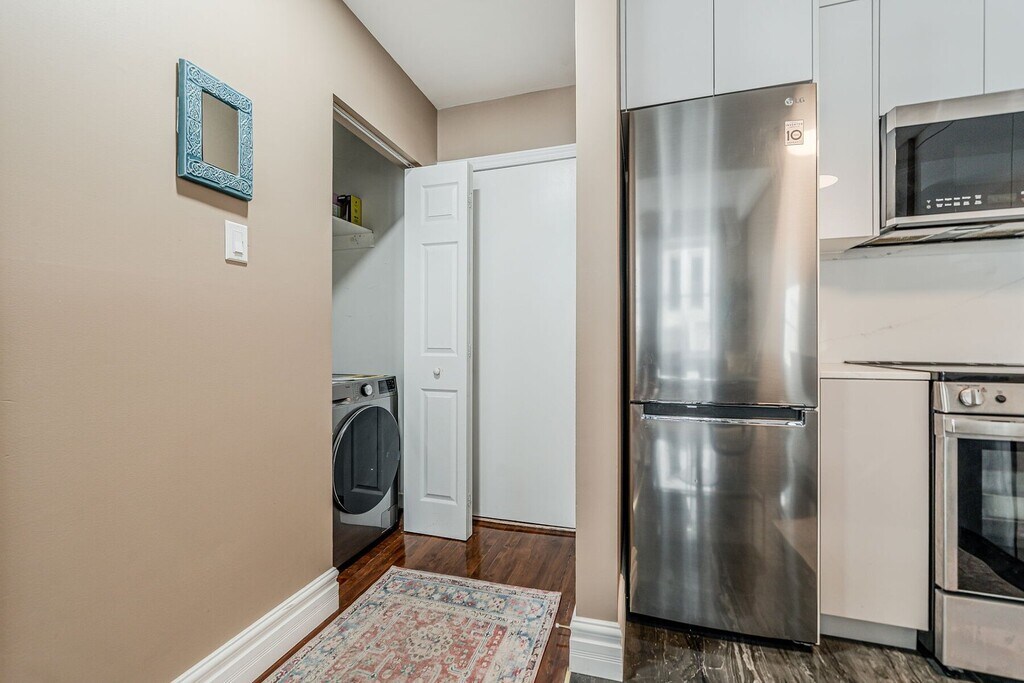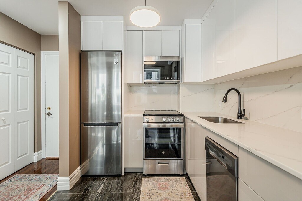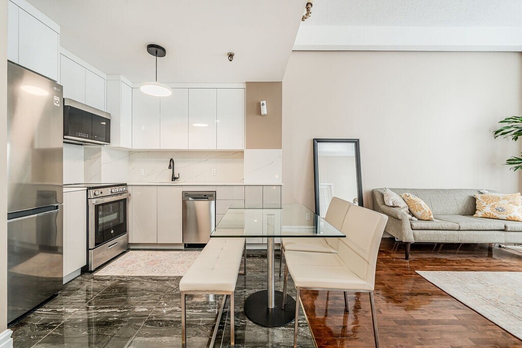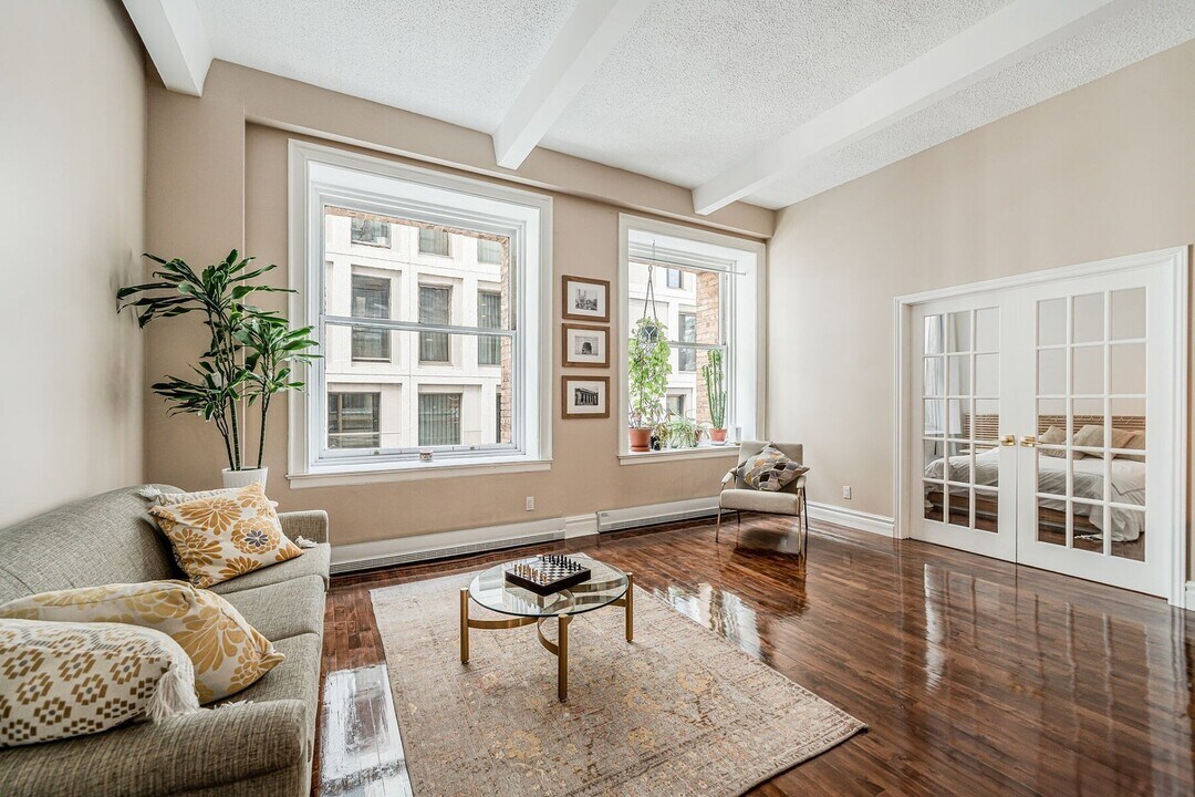Splendid furnished apartment for rent in Old Montréal. Recently renovated, it features a closed bedroom, an open-concept living area, a well-designed kitchen with dining space, and a modern bathroom. High ceilings provide excellent airflow, while hardwood floors and exposed beams create a warm and bright atmosphere. Located in the heart of Old Montréal, you will enjoy the historic charm of the neighbourhood, its picturesque streets, lively cafés, and proximity to the Old Port. Just steps from Place-d'Armes metro station and close to Downtown.