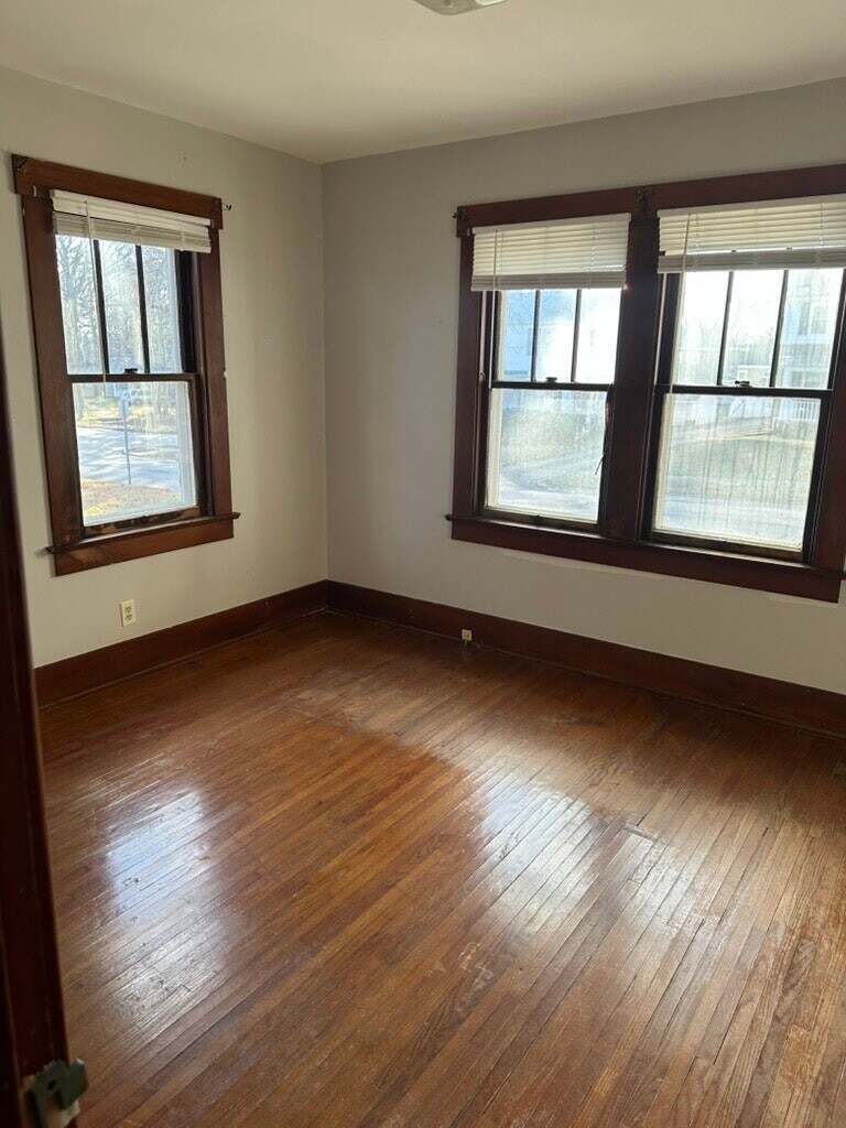 2 bedroom 1 bathroom ranch in West End neighborhood. Screened-in front porch, large living room with fireplace that opens into dining room. Lots of kitchen storage space. Unfinished basement and attic span the length of the whole house. Efficient HVAC system. Includes dishwasher and washer/dryer. Close to Milliken University and Decatur downtown area.