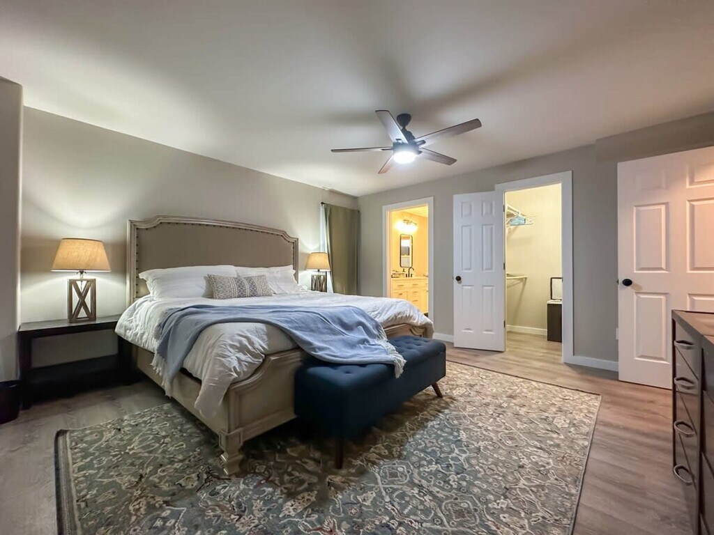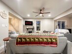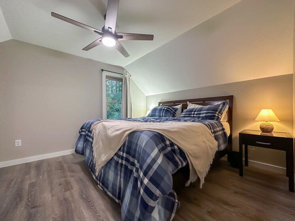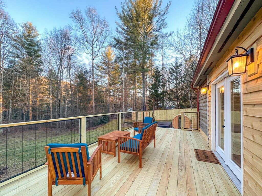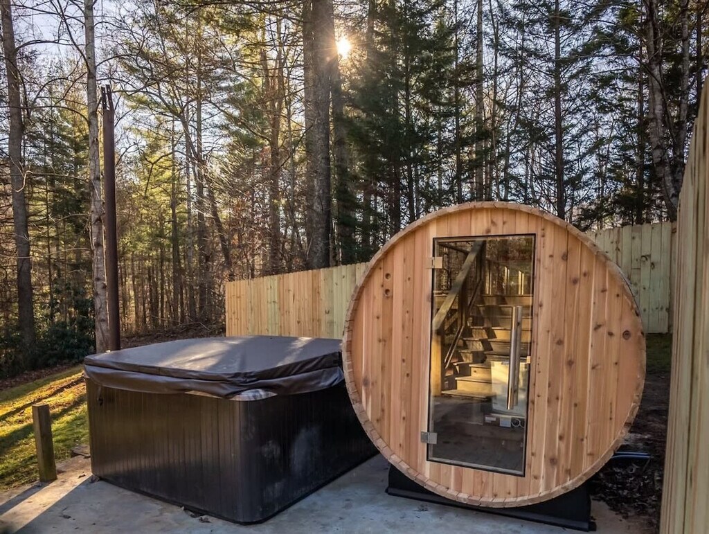 This 4-bedroom home in Fletcher, NC, offers everything you need for an amazing vacation. Feel at home in this charming cedar-sided cabin, featuring an expansive deck with stunning views, a hot tub, sauna, fire pit, outdoor patio and dining area, BBQ grill, and game room with a ping pong table and board games. The fully stocked kitchen and dedicated workspace ensure comfort and convenience for your stay. Nestled in the serene beauty of Fletcher, NC, this cabin offers 4 bedrooms and 2.5 bathrooms, comfortably accommodating up to 9 guests. The Spa Lodge is the ideal getaway for families seeking a peaceful yet fun-filled escape with breathtaking views of the Blue Ridge Mountains. Enjoy large indoor and outdoor dining areas, cozy up around the outdoor fire pit, or engage in friendly competition with ping pong, corn hole, horseshoes, and a collection of board games. For the ultimate spa experience, slip into the barrel sauna and hot tub, enhanced by built-in Bluetooth speakers and colorful mood lighting. Up to 2 dogs are allowed for $125 per stay, with no cats permitted. Parking is available in the driveway for up to 3 cars, with no street parking allowed. Just 25 minutes from the iconic Biltmore House and 30 minutes from vibrant downtown Asheville, this home perfectly blends country quiet with convenient access to city attractions. Nearby attractions include the Blue Ridge Parkway, the Biltmore Estate, Grove Park Inn, the North Carolina Arboretum, and Sierra Nevada Brewing Company. Local dining options feature Blue Sky Cafe, Kosta's Kitchen, Blue Agave, Fork Lore - Storied Food & Spirits, and Mehfil at Skylaranna. Renting a car is recommended for exploring the area, and 4WD or all-wheel drive is required during snowy or icy conditions. Check-in is at 4pm and check-out is at 10am. A 4-wheel drive vehicle is required to access the property, especially during rainy or snowy conditions. No parties are allowed, and violations may result in immediate termination of the stay. An exterior camera is installed solely to monitor the cleaning team for quality and security purposes. Guests must be 21 years or older to book this property. Outdoor pools in North Carolina typically close for the season in October. Availability may vary depending on weather conditions and property-specific maintenance schedules. The home includes a dedicated workspace and high-speed satellite internet. However, due to the remote mountain location, Wi-Fi can occasionally be slow or spotty, offering the perfect excuse to unplug and unwind. [SI]