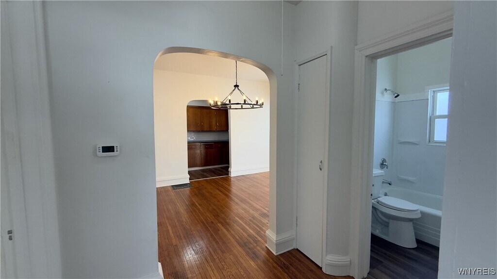 Hamburg Village living! Walkable from the vibrant Hamburg Village Restaurants and entertainment! Enjoy an outdoor oasis with over 1/2 acre of backyard to relax and enjoy the outdoors. The apartment is an upper unit with two floors. The first floor of the apartment has refinished wood floors,large primary bedroom,additional bedroom,full bath,living room,dining room,and kitchen. Second floor of the apartment has a large bonus space with new carpeting,perfect for a home office,workout space,or play room. Parking in the rear,garage space available,laundry in the basement. Available now,tenant pays gas/electric/wi-fi cable. Application requirements: Min 650 credit score,3x the rent,no collections.