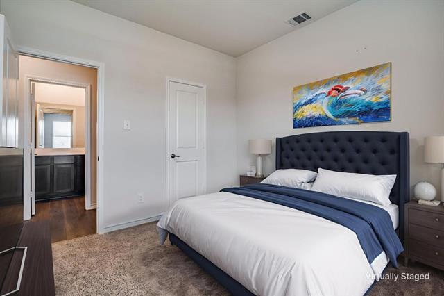 Discover this beautifully appointed home featuring 3 spacious bedrooms and 3 full bathrooms, this residence is designed to provide comfort and convenience for all lifestyles. With a well-thought-out floor plan, this home offers versatility and charm, making it a perfect choice for anyone seeking a modern yet warm space to unwind. Step inside to be greeted by an expansive great room, bathed in ample natural light, accentuated by luxury vinyl plank floors that extend throughout the common areas. This open-concept design seamlessly connects the living room to the dining and kitchen spaces, creating an inviting atmosphere for entertaining or everyday relaxation. The kitchen is a true highlight, equipped with modern appliances, ample cabinetry, and a generous island, perfect for culinary enthusiasts. Retreat to the primary suite, a private sanctuary featuring an en-suite bathroom with dual sinks, a soaking tub, and a separate shower. Two additional well-sized bedrooms and two more full bathrooms provide convenience and comfort for residents and guests alike. Step outside to appreciate the home's stunning brick and stone facade, lending timeless curb appeal. The exterior continues to impress with a landscaped yard. The property also includes a 2-car garage, providing both protection for vehicles and additional storage space. Positioned in a friendly community with close proximity to local amenities, parks, and schools, this property balances tranquility with convenience. Experience a blend of suburban charm and modern living in this exquisite Mesquite home. Don't miss the opportunity to make this exceptional property your own, and enjoy the best of what Mesquite has to offer.