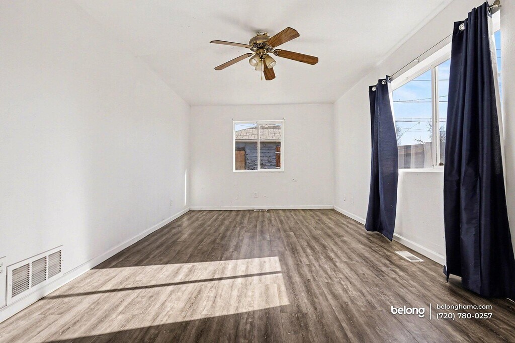Filled with natural light and an easy, open feel, this beautiful home highlights classic charm and everyday functionality. A welcoming front porch sets the tone, while wood flooring and soft, neutral finishes carry that airy atmosphere throughout. Living and gathering spaces feel open and comfortable, giving you room to relax, host, or spread out as needed. Built-in storage adds character while keeping the space practical. Kitchen design leans bright and functional, featuring open shelving, generous counter space, and a layout that keeps everything within reach. Whether you are cooking daily meals or entertaining casually, the space stays connected to the rest of the home, maintaining a light and open flow. All 3 bedrooms provide a comfortable footprint that supports both rest and productivity, while the 2 bathrooms are positioned for easy access across the home. Location truly stands out here. Nearby access to Ruby Hill Park, Overland Golf Course, and the Platte River Trail supports an active lifestyle, while everyday errands stay simple with King Soopers and local markets along South Broadway. Cafes, dining spots, and neighborhood favorites line the corridor, offering variety just minutes away, along with convenient routes into downtown Denver. *Our homes come as-is with all essentials in working order. Want upgrades? Request it through the Belong app, and our trusted pros will take care of the rest!