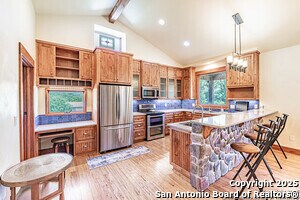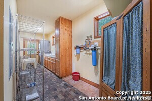 Experience Hill Country living at its finest in this beautiful two-story home in Hunt, Texas. This 3-bedroom, 2.5 bath property is designed with comfort and sustainability in mind, featuring a 10,000-gallon water catchment system, energy-efficient construction, and a xeriscaped yard for low-maintenance living. A large screened-in porch offers incredible views of the water, the perfect spot to relax and unwind. Inside, the home boasts spacious living areas and modern conveniences, while outside you'll find a barn and pen ideal for horses or other animals. Nestled along FM 1340 with easy access to Kerrville and Hunt, this property offers the perfect balance of natural beauty, privacy, and accessibility.