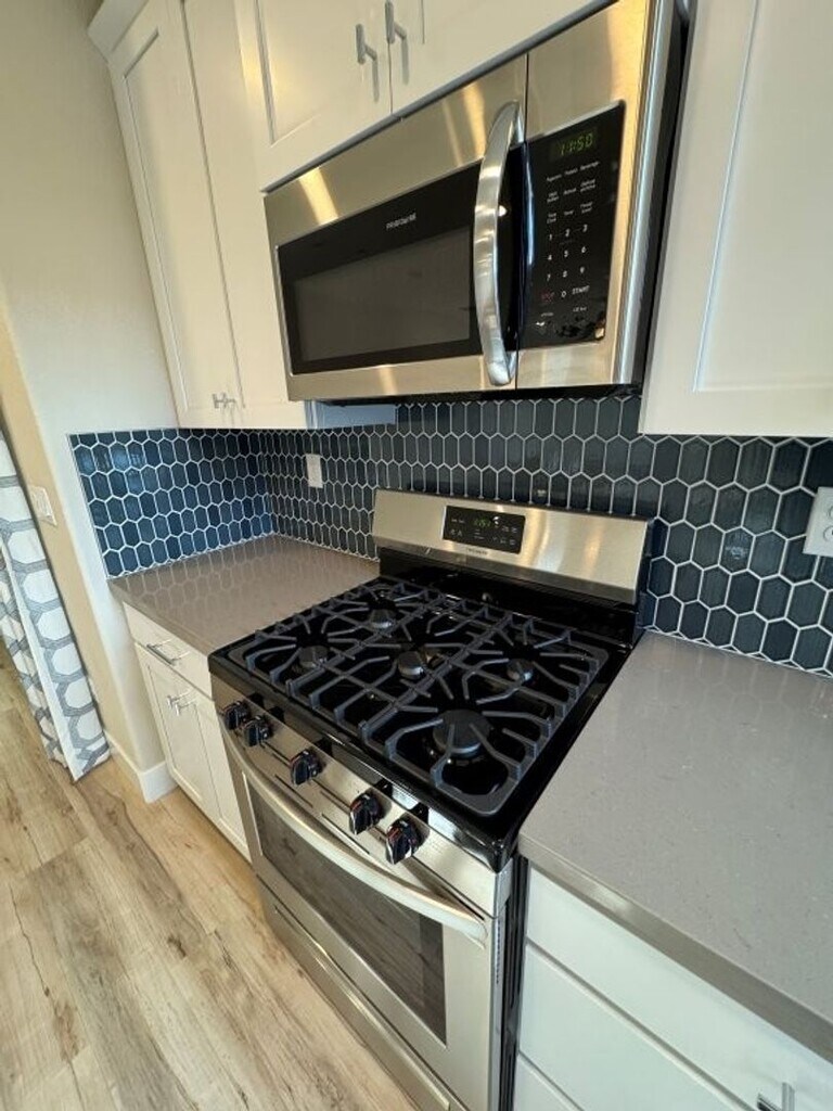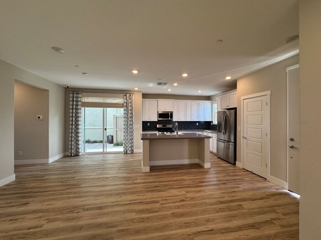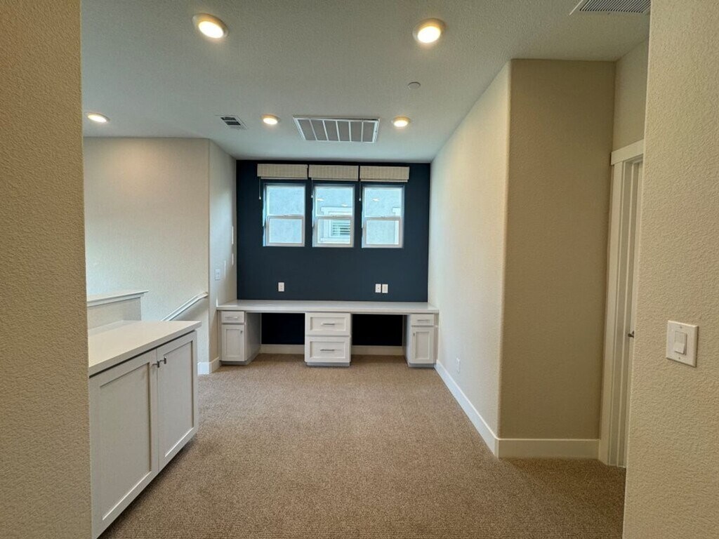 Welcome to this beautifully designed two-story home featuring 3 bedrooms and 2.5 bathrooms. The spacious living room opens to an impressive modern kitchen with stainless steel appliances, white cabinetry, and elegant quartz countertops. Upstairs, you’ll find all three bedrooms plus a versatile loft area with a built-in desk—perfect for a home office or study space. The primary suite includes a large walk-in closet and a luxurious private bathroom. Convenient upstairs laundry, a tankless water heater, and an EV/Tesla charger add comfort and efficiency. The home also offers a two-car garage with rear access and a low-maintenance layout ideal for modern living. 360 Virtual Tour: