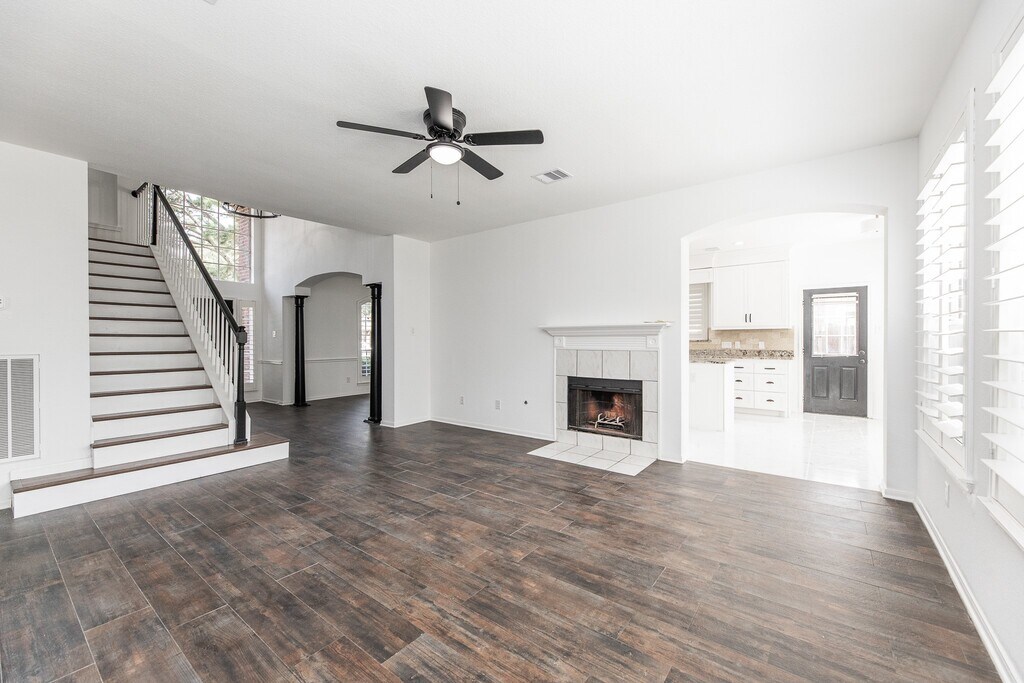 Welcome to this stunning home in Westfield Terra! 4 bedroom 2.5 bathroom. Step into a grand entryway leading to an open-concept floor plan filled with natural light from oversized windows. The formal dining room is perfect for entertaining,while the chef’s kitchen features a large island,granite countertops,recessed lighting,a deep farmhouse sink,stainless steel appliances,and ample cabinet space. A cozy breakfast nook overlooks the backyard with a flagstone patio and deck. The first-floor primary suite offers a luxurious en-suite bath with his-and-hers walk-in closets,a whirlpool tub,and separate shower. Rich hardwood floors,fresh neutral paint,elegant columns,plantation shutters,and designer lighting add style throughout. Upstairs features a spacious landing,generously sized bedrooms,and extra living space. Water softener included. Located in desirable Katy ISD,close to dining,shopping,and entertainment. MLS# 48998046