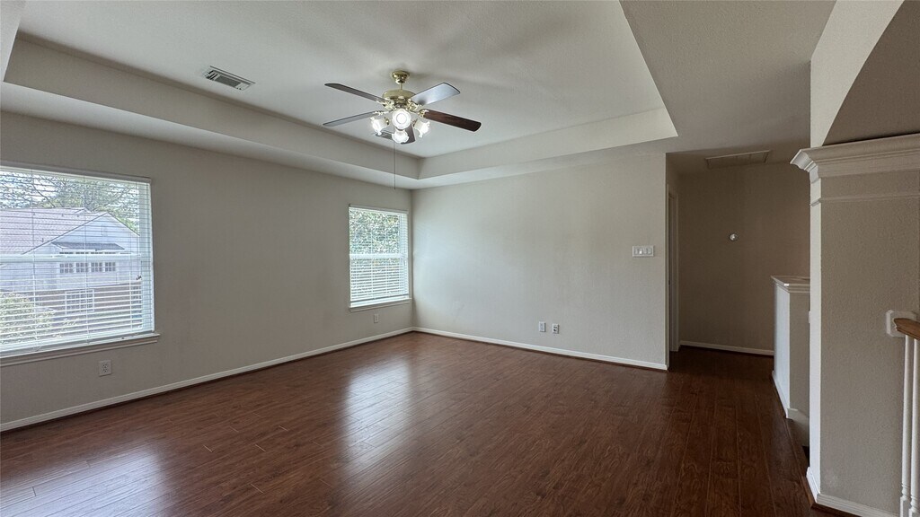 Never flooded! Fabulous 2-story home with 4 beds and 4 full baths. Stunning open foyer. 2 stairways with one leading to the kitchen. Formal living/dining/study with hardwood flooring. No carpets throughout the house. All windows were replaced with double-paned windows in 2025. Spacious island kitchen with granite countertops. The master bath has a granite countertop too. Stainless steel appliances. 2 refrigerators,washer,and dryer provided. Just steps from a beautiful jogging trail and park. Quick access to shopping and entertainment. Highly acclaimed schools. MLS# 21149783