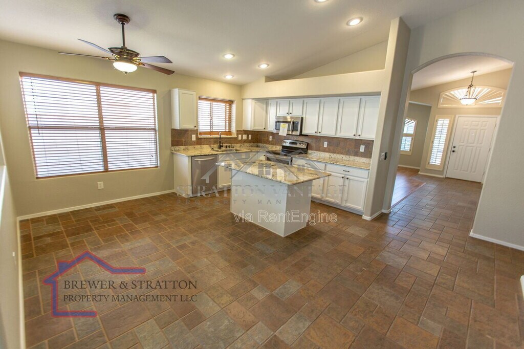 Here are the links to the 3D Virtual Tour: MUST SEE THIS wonderful, single-level home with 3 BR, 2 BA plus a den in the highly sought after Finley Farms community! This home features all tile and wood-look laminate flooring throughout, and granite in the kitchen and bathrooms. The spacious kitchen offers ample cabinets for plenty of storage, including a pantry. The primary bathroom has dual sinks and a separate tub and shower. In the back yard you will find an extended patio with a Baja stove, great for entertaining! Located close to parks, schools, shopping, dining, entertainment and MORE! Located Near Greenfield and Warner! Landscaping included! ***Fridge to be installed*** *BEWARE OF SCAMS! We do not list our homes on Craigslist or Facebook Marketplace. Please get in touch with Stratton Vantage Property Management to confirm availability and rent price* MOVE-IN COSTS Security Deposit: 1.25x–1.5x monthly rent (75% may be refundable) First Month’s Rent + 4.4% admin fee + $49.95 Resident Benefits Package setup fee $225 lease preparation fee *Pets: If applicable, $250 non-refundable pet fee per pet + first month’s pet rent ($60–$80 per pet, includes $30 pet admin fee). Some breed restrictions apply. Does not apply to Assistive Animals MONTHLY CHARGES Rent + 4.4% admin fee $49.95 Resident Benefits Package (includes renters’ insurance, air filter delivery, credit reporting, rewards program, and more) *Pets: If applicable, $60–$80 pet rent per pet (includes $30 pet admin fee). Does not apply to Assistive Animals VIEWING INSTRUCTIONS Call (FOUR EIGHT ZERO FIVE FIVE THREE EIGHT ZERO NINE FOUR) to schedule a self-guided tour. IMPORTANT Before applying, please visit to review rental qualifications and legal disclosures. ADDITIONAL DISCLOSURES Stratton Vantage Property Management is an Arizona LLC (dba of Brewer & Stratton Property Management LLC) 12-month lease minimum; longer terms may be negotiable. We follow the Fair Housing Act and do not discriminate based on race, color, religion, sex, handicap, familial status, or national origin. All info is deemed reliable but not guaranteed. We are not responsible for any errors or omissions in this listing. By submitting your information on this page you consent to being contacted by the Property Manager and RentEngine via SMS, phone, or email.