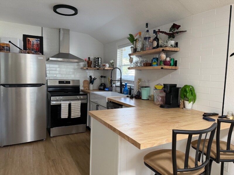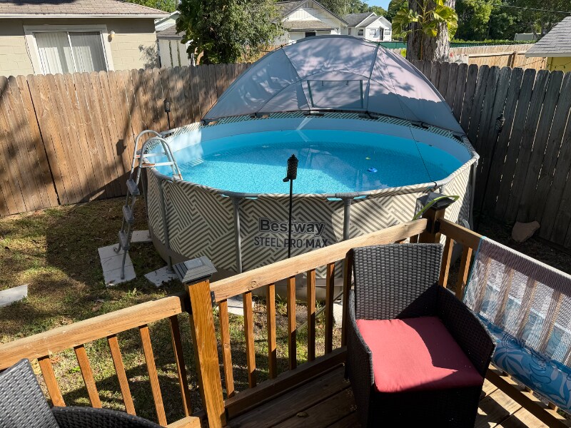 Property Id: 1439075 This beautiful home is the epitome of hassle-free living. The open floor plan connects your living and dining areas, flowing into a modernized kitchen with butcher block countertops and new appliances including dishwasher. Laundry room has a brand-new large-capacity washer and dryer. House has a fenced in back yard and rear deck. This renovated home has a fresh and modern feel, two well-appointed bedrooms and a centrally located bathroom. Property has a private driveway for off-street parking. Includes a brand new roof, HVAC system, and tankless water heater. Conveniently located with quick access to I-275 and is a five-minute drive to Tropicana Field, Grand Central and Edge District along Central Ave. Rent includes all utilities other than electric, including high speed internet. Above ground pool pictured was installed by previous tenant. Can be kept or removed. Tenant responsible for maintenance Note: Unit is unfurnished. Beds pictured on floor plan are queen-sized.