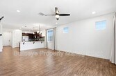 This 3 bed 2 bath home sits on a corner lot in the heart of Queen Creek. The den features clear glass double French doors, perfect for a workspace. The kitchen boasts stainless steel appliances, dark cabinetry, pantry, wonderful tile backsplash and quartz countertops. The master bedroom has a walk-in closet, and the bathroom has double sink vanity. The backyard is great for entertaining with the covered patio, fire pit, and lush grass with bistro lights to complete the look! your 360 virtual tour: Terms $70 monthly hvac filter fee(includes bimonthly air filter install)/processing fee on top of rent $300 one time admin fee Renters insurance required Pets call first