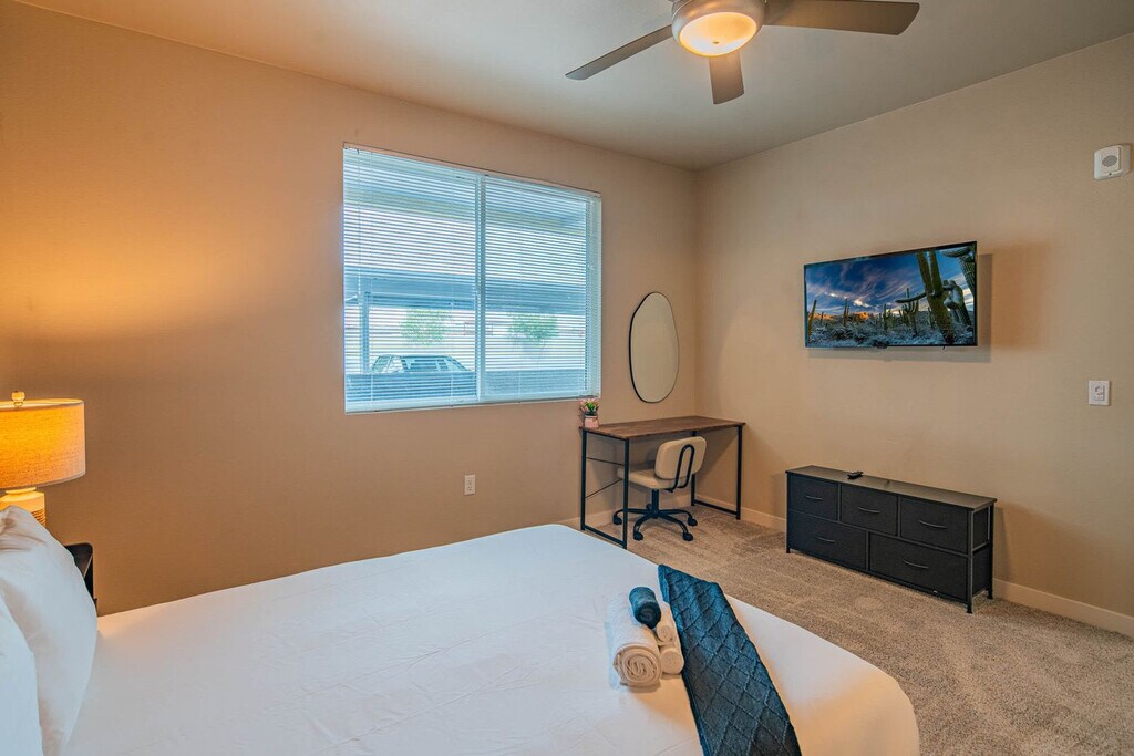 Settle into this inviting 1-bedroom apartment in the heart of Downtown Tempe, where the best of the city is right at your doorstep. From highly rated restaurants and charming local eateries to historic landmarks and popular attractions, everything you need is just steps away. After a day of exploring, return to a stylish and comfortable space where you can unwind, recharge, and get ready for your next Tempe adventure. Unwind in this thoughtfully designed 1-bedroom apartment, where comfort meets style. The open-concept layout seamlessly blends the living, dining, and kitchen areas for a sleek, modern feel. Relax in a cozy yet stylish living room, perfect for spending time with friends and family or enjoying your favorite shows on the 55" 4K HDR Smart TV. Cook with ease in the fully equipped kitchen featuring modern appliances and all the essentials you’ll need. The bedroom offers a queen-size bed with quality linens and an office desk and chair for your convenience. A private full bath is stocked with essentials so you can travel light. On-site parking is available, and details will be provided at check-in. Situated in the heart of Tempe, this apartment is perfectly positioned near Arizona State University, giving you easy access to cultural events, sporting activities, and campus happenings. Just minutes away, the lively Mill Avenue District offers a vibrant mix of shopping, dining, and entertainment, making it easy to enjoy the best of the city right from your doorstep. Dive into Tempe’s energetic atmosphere with destinations like Tempe Town Lake, Arizona Mills Mall, and the Desert Botanical Garden. Outdoor enthusiasts can enjoy Papago Park and the Rio Salado Pathway. Convenient travel options include major highways, public transit, and the Valley Metro Light Rail, making it simple to explore nearby cities like Phoenix and Mesa. Quiet hours are between 10pm and 8am every day. Violations may result in cancellation of booking and removal from the property without refund. There is a strict no-party policy, and unauthorized guests will incur a $100 fine per guest. Smoking is prohibited, with a $500 fine for violations. Pets are allowed depending on size or if they are service animals, with prior notification required to avoid a $500 fine. Extra cleaning fees may apply if the property is left in a state that necessitates additional cleaning. Lost or unreturned keys will incur a charge of $80 for key replacements and $150 for key fob replacements. Early check-in/check-out may be accommodated at a fee of $25 per hour with prior authorization. Delayed checkout will incur a $500 late check-out fee. A lockbox, if provided, must be kept locked at all times. Some stays have auto-locking doors, so keep the keys on you. [SI]