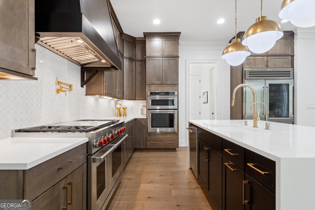 Exquisite executive residence for lease in The Manor Golf & Country Club, available August 1, 2026. Experience refined, resort-style living in this custom home within the prestigious guard-gated Manor community. Combining timeless architectural detail with impeccable interior finishes, this stately residence offers five expansive en-suite bedrooms, thoughtfully appointed living and entertaining spaces, and an ideal balance of grandeur and comfort. The dramatic formal living room and elegant dining room are perfect for hosting, while a dedicated library/home office provides a quiet space for work or study. The chef's kitchen is outfitted with Wolf and Sub-Zero appliances, a striking waterfall quartz island, and a sunlit breakfast room overlooking the private grounds. The luxurious primary suite is a true sanctuary with a sitting area and serene wooded views, enhanced by designer lighting and upscale finishes. Additional features include a fireside family room, custom mudroom, large bonus/playroom, private guest suite, and three oversized garages offering ample storage and convenience. As a resident of The Manor, you will enjoy access to premier amenities including a Tom Watson-designed 18-hole championship golf course, indoor and outdoor tennis courts, a heated indoor pool and resort-style outdoor pool, a state-of-the-art fitness center, basketball court, expansive sports fields, and a full-service clubhouse with dining, spa services, and an active social calendar, all within a secure gated environment. Conveniently located minutes from Avalon, Halcyon, and downtown Alpharetta, this estate provides effortless access to world-class dining, boutique shopping, and top-tier entertainment. The home is offered unfurnished; HOA fees are included, and the tenant is responsible for utilities and lawn care. MLS ID 10707921