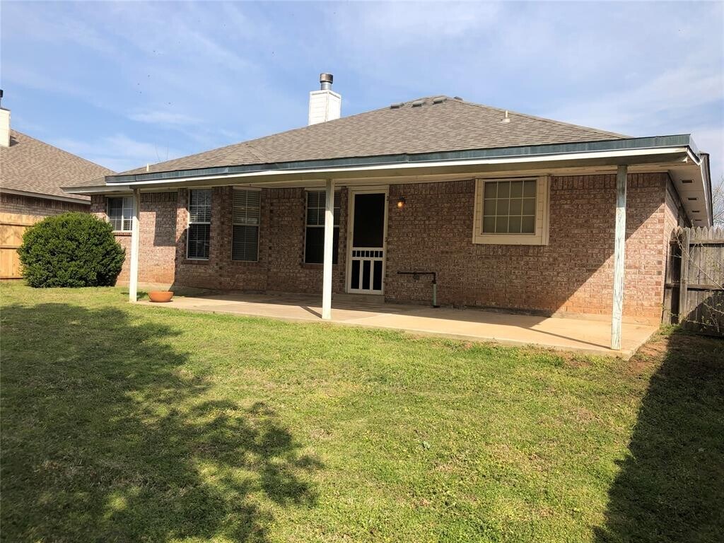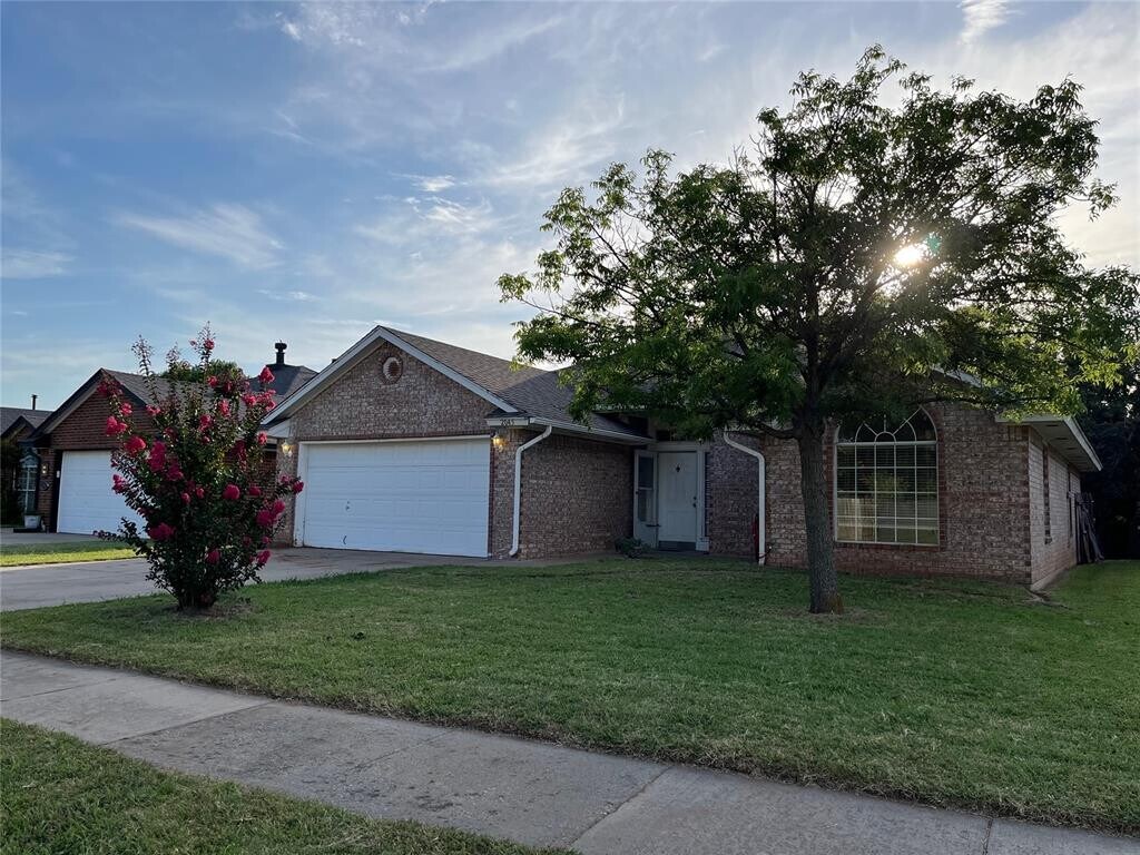 Wonderful home with lots of character in neighborhood with single entrance. Spacious living with fireplace and bonus area sets this home apart. Kitchen,with full pantry,has lots of cabinet and counter space plus bar stool seating at kitchen bar. Fridge included. Covered back patio backs up to dead end street and green belt and provides the perfect spot to relax and unwind or to entertain friends. Nice size back yard. Split floorplan where master bath has 2 walk-in closets and separate tub and shower. Indoor laundry room and garage door openers are additional features. Large sized secondary rooms and nice curb appeal. Easy access to Hwy 9,Norman-OU,Noble,Wal-Mart,Aldi and lots of restaurants. Call for your showing today.