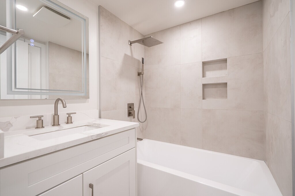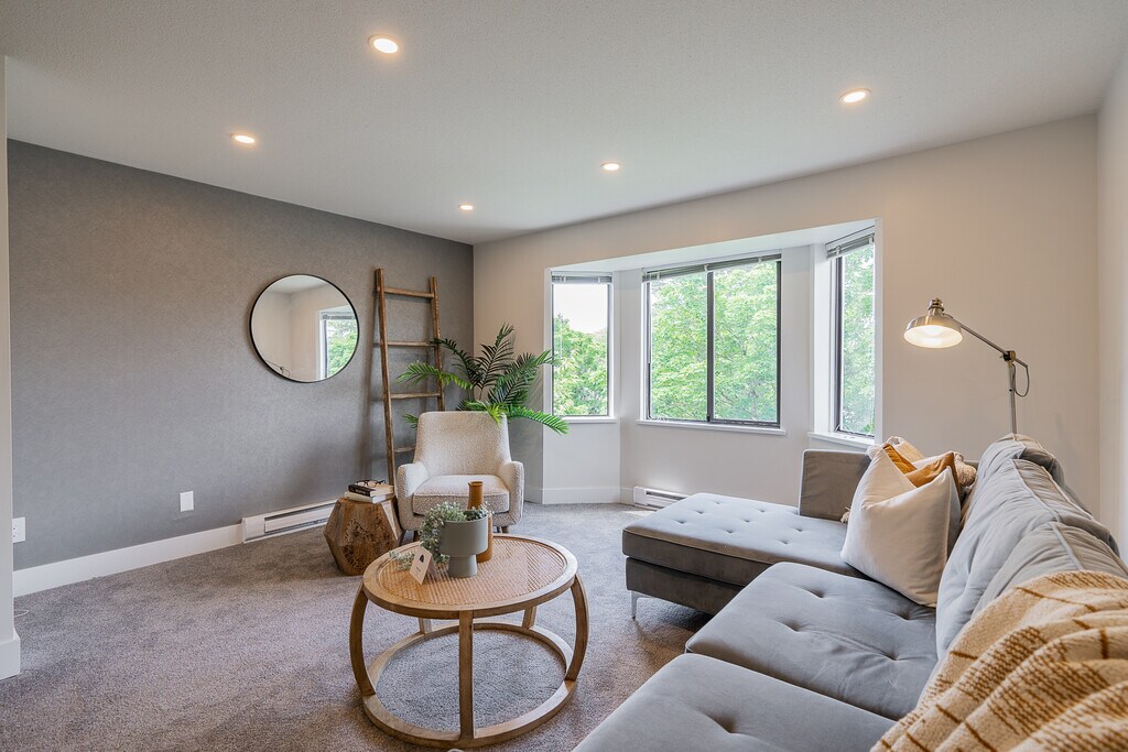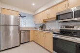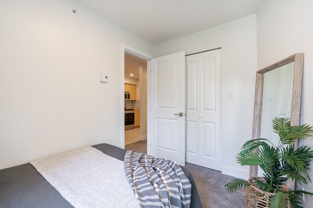 Now Available for Rent – River's Edge Top-Floor Condo Welcome to this exceptional top-floor condo at River's Edge, offering 911 sq ft of beautifully upgraded living space filled with natural light and modern finishes throughout, including new carpet, fresh paint, elegant accent walls, and a fully renovated bathroom featuring a tiled walk-in shower, contemporary fixtures, heated floors, and an LED illuminated mirror, while the stylish kitchen is enhanced with modern appliances, updated backsplash, and tile flooring for a clean, refined look; step out onto your spacious covered balcony surrounded by greenery, creating a peaceful retreat perfect for relaxing or entertaining, and enjoy the added convenience of two parking stalls, a storage locker, a large in-suite laundry room, and a pet-friendly policy—a truly move-in-ready home offering comfort, style, and functionality. All within a highly walkable, family-friendly area close to Douglas Park, Linwood Park, nearby schools including Nicomekl Elementary School and Langley Secondary School, and just minutes from community programs at Timms Community Centre, along with shopping, transit, and everyday amenities—an ideal home that blends comfort, style, and unbeatable convenience. One Year Lease. Screening Required. Utilities Separate. Property Listed by Four Seasons Property Management Ltd.
