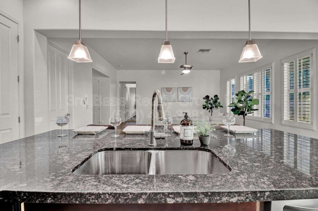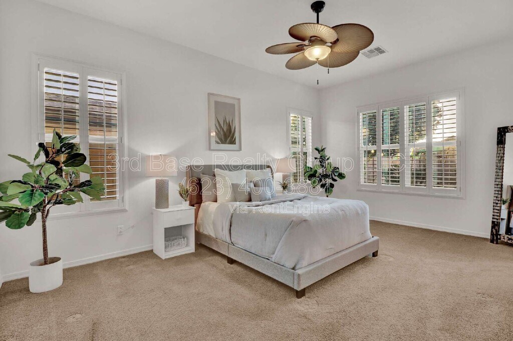 Verrado 4bed / 2 bath designer home with upgrades throughout. Home has SOLAR. Premium light and fan package, staggered mahogany cabinets, stainless steel KitchenAid appliances, professional range and hood, granite counters, huge walk in pantry all set in an open concept eat-in-kitchen. You'll also find custom shutters throughout, upgraded mirrored closets and an enormous backyard with grass for fido and fun. With over 21 miles of hiking and biking trails, there are plenty of opportunities for kids and adults of all ages to get out enjoy everything from a casual morning stroll to an ambitious summit hike. Verrado's Main Street district means shops and restaurants are only minutes from your door. Five highly performing schools and more than 70 neighborhood parks are yet another part of what makes Verrado so special. However you decide to spend your days, you can rest assured you'll end each one with an unforgettable White Tank Mountain sunset. To apply or view more homes go to and click For Rent By submitting your information on this page you consent to being contacted by the Property Manager and RentEngine via SMS, phone, or email.