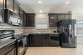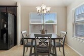 This well-maintained former model home in Princeton offers a single-story open floor plan with neutral colors, a kitchen featuring black appliances, breakfast bar, and dark cabinets, and a primary suite with laminate wood floors, dual sinks, separate tub and shower, and a spacious walk-in closet. A large wooden deck overlooks the fenced backyard, perfect for pets or play, and the home comes complete with a refrigerator, washer, and dryer. New carpet was installed in August 2025. Conveniently located near the community pool, playground, elementary school, shopping, dining, and major highways.