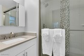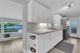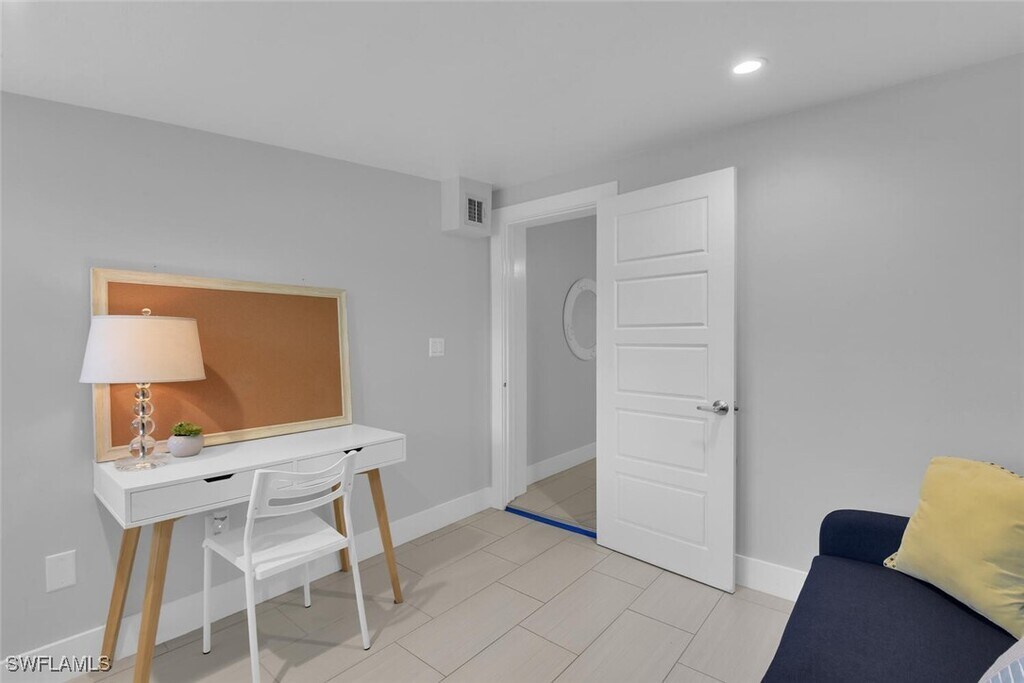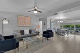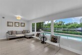 Harbor Lane Bungalow is a waterfront mid-century modern single family home in the downtown Naples neighborhood of Brookside. A beautiful heated pool and hot tub overlook the gulf-access canal where you have a newly rebuilt private boat dock with lift. The location is super convenient - less than 5 minutes drive to 5th Ave S,Bayfront,Tin City and the famous white sand beach! Inside,the house has been completely renovated with modern finishes including tile floors throughout,quartz countertops,and high-end furnishings. The primary bedroom has a king size bed,ensuite bath with glass enclosed shower,and a walk-in closet. The two guest bedrooms share a bath with a shower/tub combo and there is a den located off one of the guest bedrooms with a desk and sleeper sofa to serve as an extra sleep area or home office. An air-conditioned laundry room with washer,dryer and storage is accessible from a door at the back of the carport.