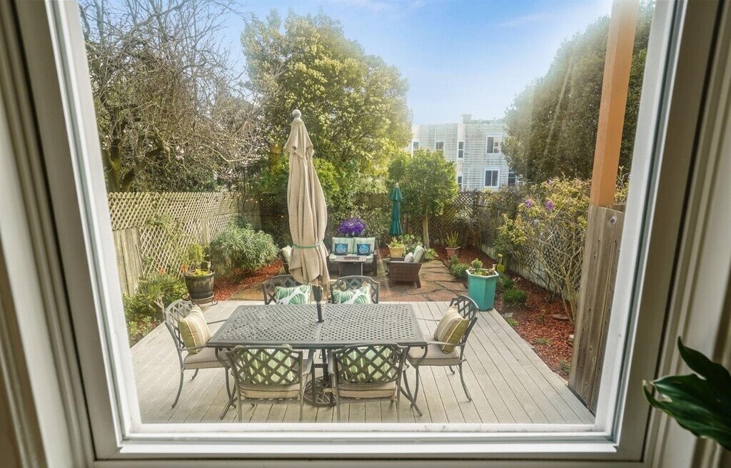 This spacious 712sf, 1-bedroom, 1-bath home has big south facing windows, hardwood floors, good ceiling height, a beautifully updated eat-in kitchen with new s/s appliances, a walk in pantry, and newly updated bath. Additional features include a shared w/ d, a large deeded storage room, direct access to a grilling area and huge shared and fenced backyard. You'll love living here! NOPA has all the conveniences you could ask for, and is just a short distance to trendy, highly rated bars and restaurants, the University of San Francisco, and the iconic Alamo Square and Painted Ladies.
